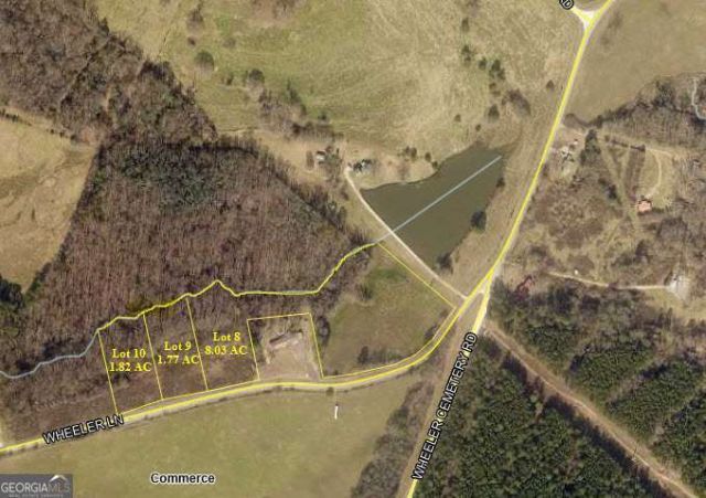 Lot 9 of Wheeler Meadows located along Wheeler Lane in Jackson County. NO HOA. A 1.77-acre estate lot with stream along the rear property line with a level to gentle topography. Private country setting but convenient within 10 minutes of Jefferson, Maysville, and Banks Crossing and 30 minutes of Athens and Gainesville. Lot has access to county water. Seller has recent soil studies on file as well. Lot lays perfect for a slab or basement construction. Bring your own builder or work with our builder, Trailside Equities, to make your dream home a reality!