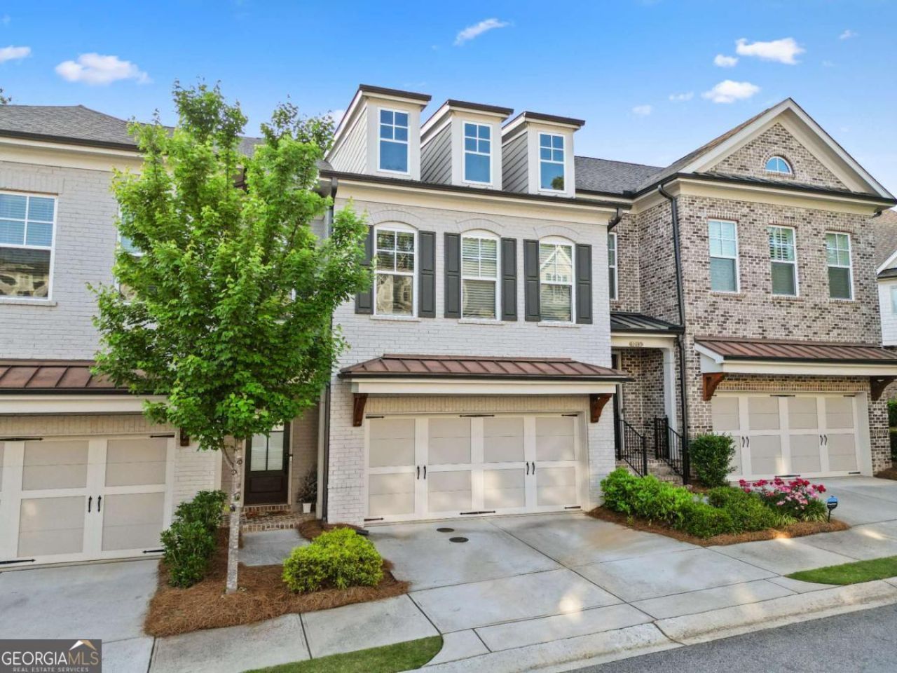 Welcome to your dream townhome in the heart of Downtown Roswell, where elegance meets convenience. Located in a gated community, this stunning property offers an open floor plan that seamlessly connects the kitchen, dining, and living room. The kitchen shines with taupe cabinets, a massive island, and luxurious stone countertops perfect for entertaining. The classic brick exterior exudes charm, complemented by a manicured lawn and private fence for added privacy. With four parking spaces, including a kitchen-level garage, accessibility and storage are at your fingertips. The upper level features a luxurious master suite with a huge walk-in closet and vaulted bath ceiling, adding grandeur to your space. Two additional bedrooms, each with walk-in closets, share a well-appointed bath, ensuring comfort for family or guests. Enjoy the serenity of a view overlooking lush green space, and with proximity to Roswell's vibrant Canton Street, you're minutes from shops, restaurants, and entertainment. Enjoy easy access to GA-400 and a short commute to historic downtown Roswell and beyond.