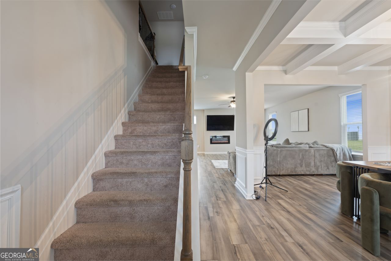 Seller incentives available. Beautiful home - Filled with beautiful natural light, this 4BR/3.5BA home is nestled on a quiet cul-de-sac and designed for everyday comfort. The dining room features an elegant coffered ceiling, while the open family room flows seamlessly into the kitchen with abundant cabinetry, a large island, and a built-in coffee station. Durable LVP flooring extends throughout the main level, adding both style and function. Upstairs, the spacious primary suite boasts a huge walk-in closet, double vanity, and tiled shower. A secondary bedroom offers its own private bath and walk-in closet, while the additional bedrooms share a Jack-and-Jill bath. Conveniently located near Tanger Outlet Shopping, new restaurants and a new Publix. This home is the perfect blend of charm and convenience. Opportunity awaits, schedule your private tour today! No HOA Fees for the first year.