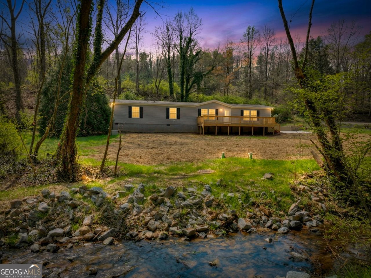 Welcome home to this BRAND NEW 4 BEDROOM, 2 BATH HOME ON 1 ACRE WITH CREEK FRONTAGE, CITY WATER & SEWER, AND NO HOA-perfectly located just 1 mile from downtown Ellijay and right outside the city limits. This 1,904 sq ft home sits on a permanent foundation with a newly poured concrete pad and walkway, and also features a separate private well for added flexibility. Enjoy a spacious, level yard along the creek and relax on the large front deck overlooking the peaceful setting. Inside, the low-maintenance home offers all new appliances, durable vinyl siding, and energy-efficient double-pane windows. The open-concept living area flows seamlessly into the kitchen with an island and sliding glass doors leading to the back deck, bringing in natural light and extending your living space outdoors. The layout includes a convenient main-level laundry area, three bedrooms and a full bath on one side, and a private primary suite on the other with an ensuite bath featuring a garden tub/shower combo and single vanity. Also enjoy a large area for a dining room or additional den. Completing the property is an 8x14 storage building with a metal roof for additional space-the perfect blend of comfort, convenience, and peaceful creekside living awaits you here, with easy access to the quaint downtown Ellijay square, hiking, apple houses, shopping, and all Ellijay has to offer.