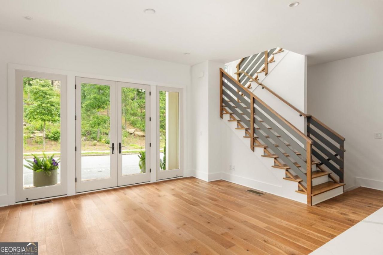 Tucked in the heart of the Mado Hamlet of Serenbe, this charming townhome offers thoughtful living across four spacious levels. A welcoming front porch leads you into open-concept living and dining, with the primary suite conveniently located on the main level. Upstairs, two guest bedrooms each feature private en-suite bathrooms, along with a rooftop terrace ideal for sipping morning coffee or hosting dinner parties under the stars. The terrace level provides a flexible rec-room with a full bathroom-perfect for a home office, media space, or guest overflow. A private garage on the main level adds ease and extra storage. This townhome is also a short distance from every wellness amenity that Serenbe has to offer including over 20 miles of soft surfaced nature trails with protected forest views.