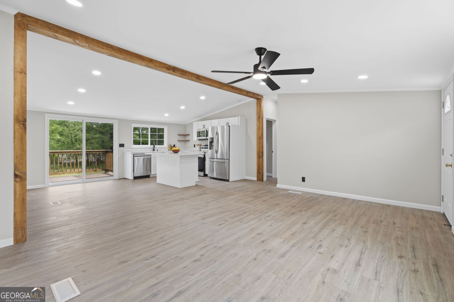 Welcome to this beautifully renovated, move-in ready home offering modern updates and comfortable living on a spacious lot. Inside, you'll find an open-concept layout with brand-new laminate flooring, fresh paint, and updated lighting throughout. The kitchen features quartz countertops, a large island, stainless steel appliances, and plenty of cabinet space, perfect for everyday living and entertaining. Both bathrooms have been fully updated with new vanities, modern fixtures, and stylish finishes. The primary bathroom offers a double vanity, a freestanding soaking tub, and a walk-in shower with tile surround, creating a clean and functional space. Major upgrades include a new roof, new HVAC system, new water heater, and new windows, providing peace of mind for years to come. Enjoy the outdoor space with new front and back decks and plenty of room to make it your own. Don't miss this fully updated home with quality finishes!