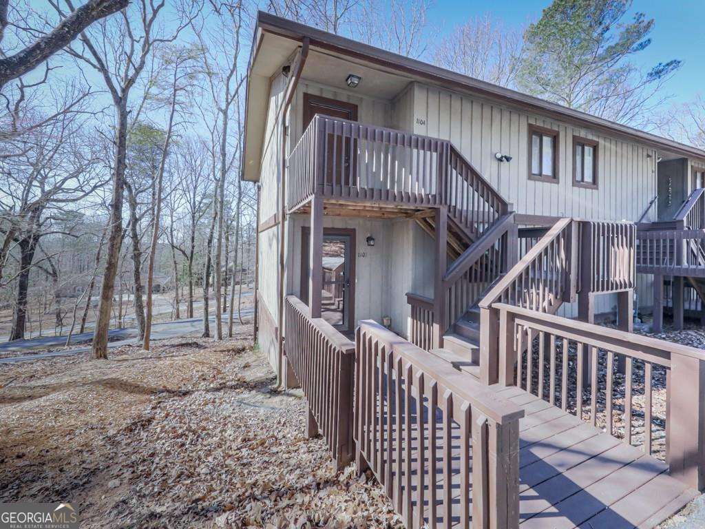 Welcome to this 1 bedroom condo nestled in the heart of private Lake Arrowhead Community. In this community you have a park with playground, hiking trails, and a marina where you can rent a pontoon boat to fish on the lake. The lake is a 540 acre spring fed lake. The neighborhood features 18 hole golf course, clubhouse with restaurant, chapel, tennis courts, 2 pools, a fire department and more. Resort get away within minutes of Canton. Can be used for weekend getaway, or full time living. Freshly Painted, New Carpet & New LVP in the kitchen! Reinhardt College Performing Arts Center is nearby.