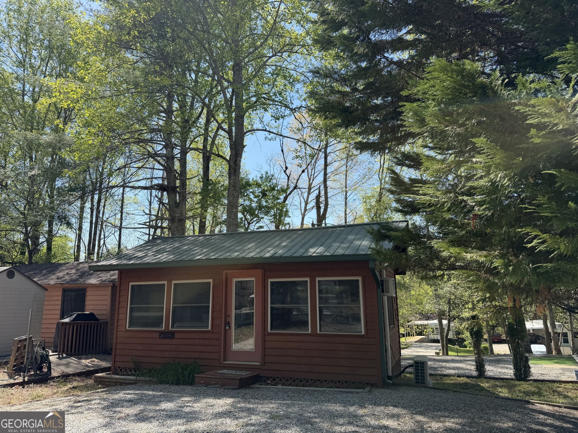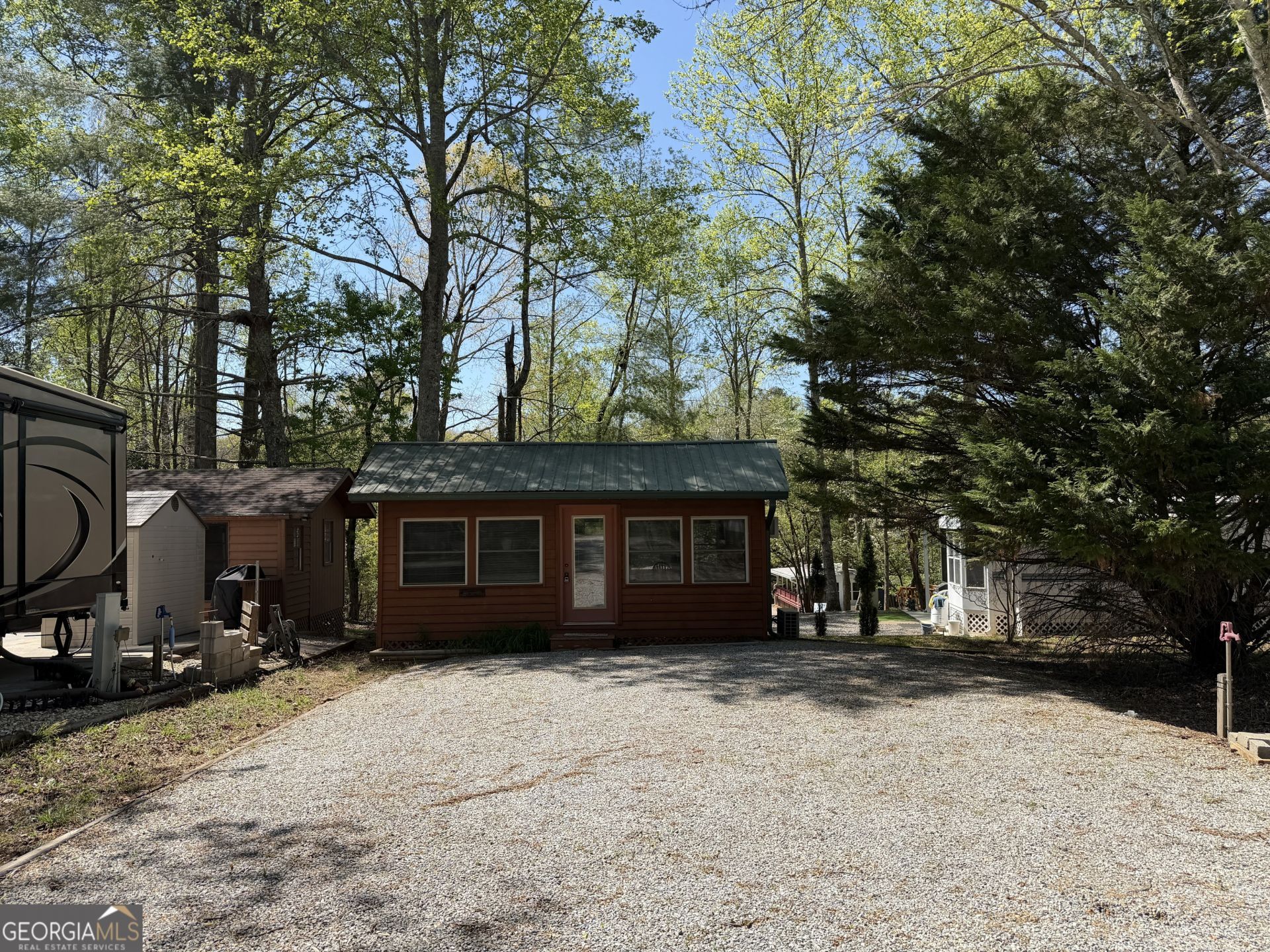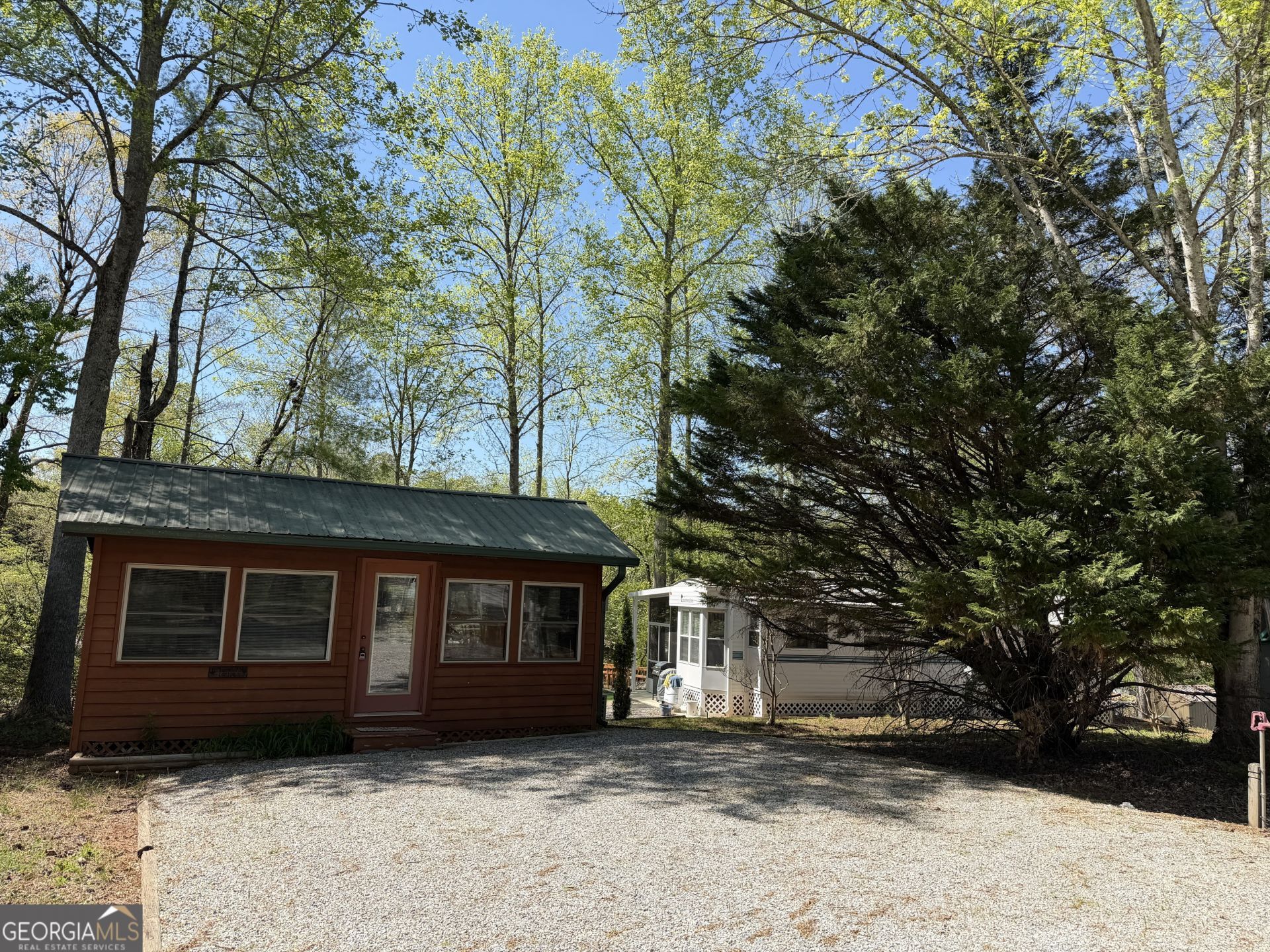 Gorgeous level gravel lot that will accommodate any size RV with a charming rustic 14 x 22 cabin ready for you to add your personal touches! Plenty of parking for family and friends on this lot. Inside in cabin, you'll find a kitchenette equipped with a double stainless-steel sink and a full-size refrigerator. The interior features warm wood ceilings and walls, complemented by large glass windows and a newer mini-split heating/cooling unit. The bathroom is divided into two areas: one with a sink and an additional utility sink that is perfect for washing your pets, and another area that includes the shower and toilet. This is a wonderful place to create lasting memories, whether you're relaxing, fishing, or participating in the various activities within Paradise, a gated community. Enjoy amenities such as the pool, green spaces, clubhouse, and planned activities! The location is convenient to all the excitement of nearby mountain towns and events, just minutes from Cleveland, Helen, Dahlonega, Clarkesville, and Blairsville. You can shop, dine, fish, hike, and visit local vineyards-the possibilities are endless! The listing agents are owners in Paradise, so feel free to call for a tour or for more detailed information about Paradise and this property. Please note that Paradise Valley is a recreational campground, and this cabin cannot be used as a primary residence.