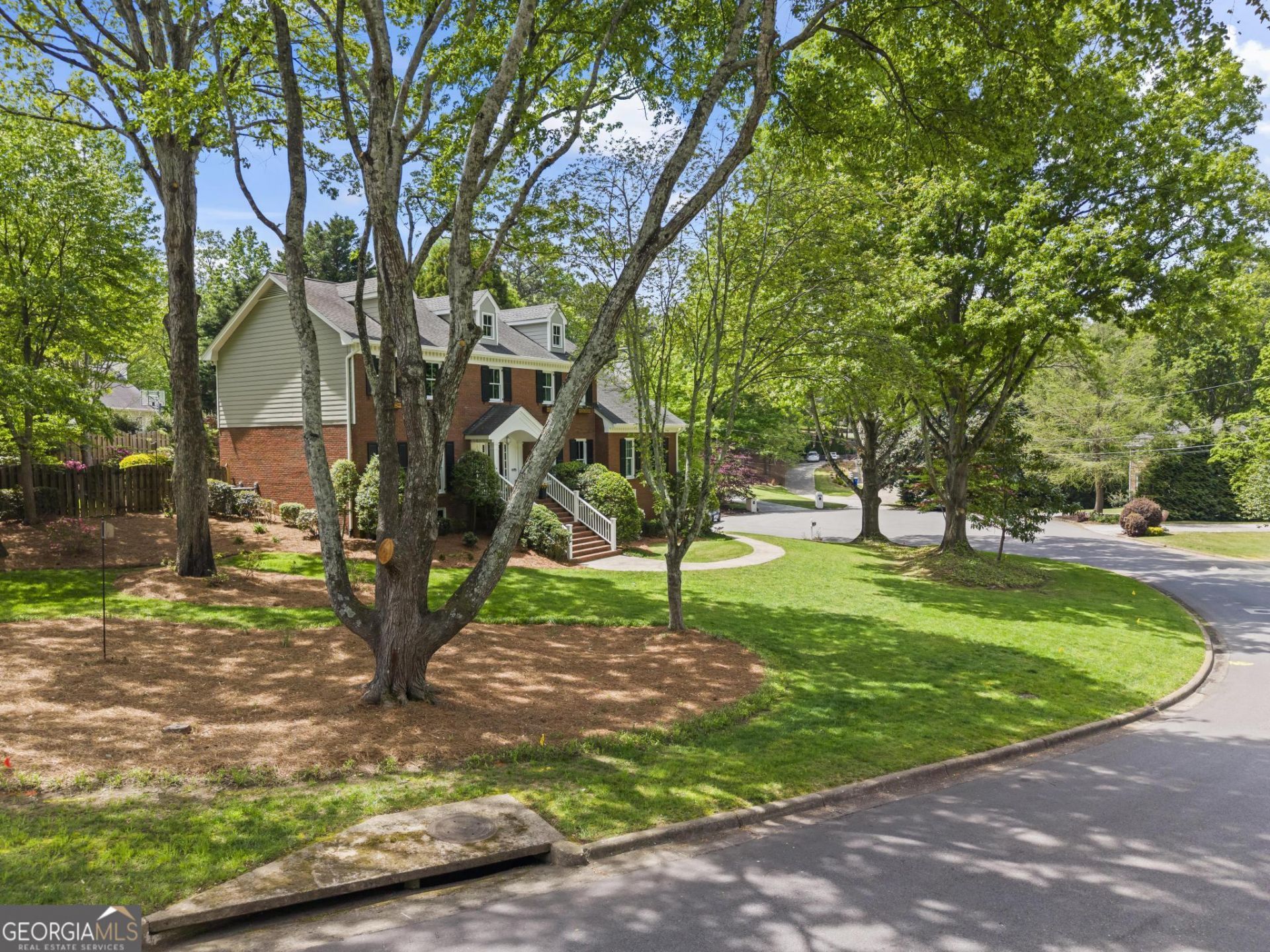Set on a peaceful cul-de-sac in Dunwoody, this beautifully detailed brick residence offers a rare combination of architectural character, spaces designed for how you live and resort-style living-just moments from The Branches Swim & Tennis Club. A charming front portico and inviting entrance set the tone for this stunning home with hardwood floors and an abundance of light throughout. The main level features a seamless flow with a formal living, which would make a great office or playroom, and dining room just off the foyers. The dining room flows into the well-appointed kitchen, spacious great room, and a screened porch perfect for year-round enjoyment. A guest bedroom and full bath on the main floor provide ideal flexibility for visitors. The vaulted family room is a true highlight of the home with exposed wood beams and a stylish wet bar-perfect for entertaining or relaxing evenings at home. Upstairs, you'll find four generously sized bedrooms, including a serene primary suite designed as a private retreat. The spa-inspired primary bath features a soaking tub set against a striking white stacked stone feature wall, a tiled shower, split vanities, and abundant natural light beneath vaulted ceilings. A custom walk-in closet completes the suite. Secondary bedrooms share a beautifully updated bath with quartz countertops, a dual vanity, and designer finishes. From the main floor, step outside to your own backyard oasis-complete with a heated pool, lush landscaping, a fully fenced yard, and a patio ideal for outdoor dining and entertaining. The screened porch offers the perfect transition between indoor and outdoor living. The finished terrace level adds incredible versatility with expansive entertaining space, a playroom or media area, office nook, full bath, and ample unfinished storage. A two-car garage with additional workshop space completes the home. Located just minutes from restaurants, grocery stores and retail at Dunwoody Village, and zoned for Austin Elementary, Peachtree Middle School and Dunwoody High School, this is a rare opportunity to own a thoughtfully designed home in one of Dunwoody's most beloved neighborhoods.