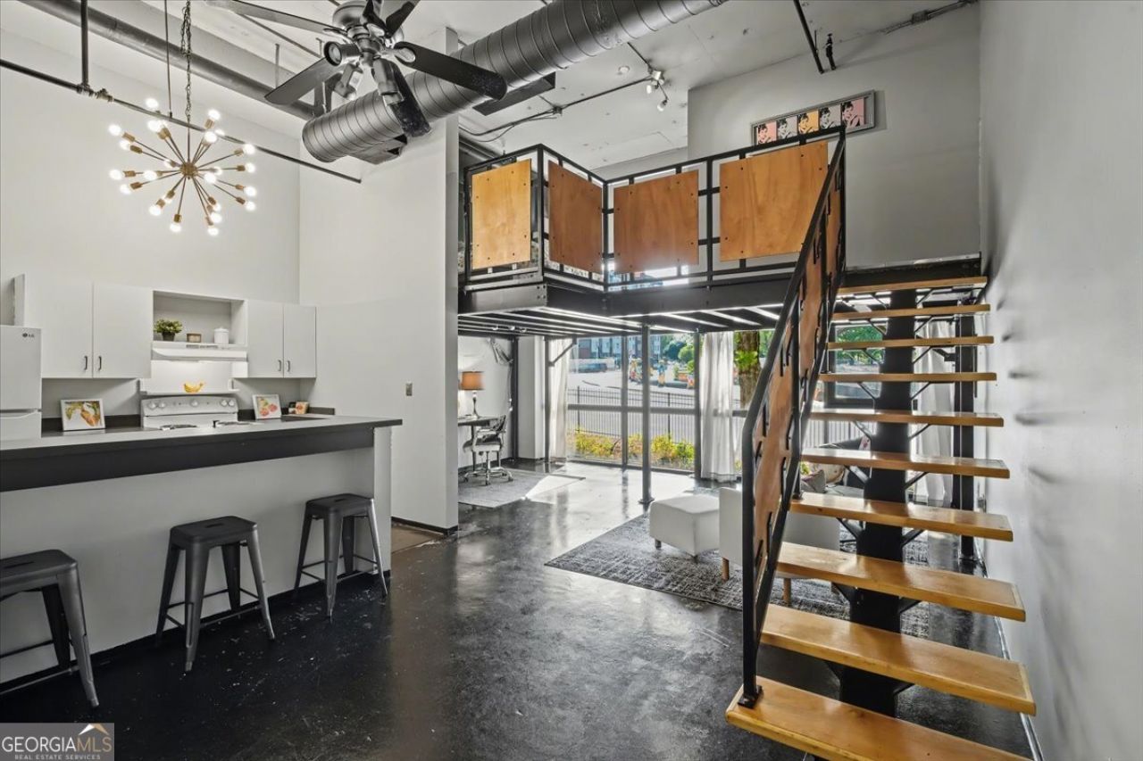 Awesome Loft Unit located in the center of the upcoming Atlanta Stitch Project. Renaissance lofts, where Old 4th Ward meets Downtown and Midtown. Soaring 15-foot ceilings and a Loft Mezzanine provide ample space for city living! 1-bedroom unit with High Windows provide stunning views of Atlanta's skyline. Open Kitchen with Breakfast Bar, Large Bathroom, and a bonus above-unit Storage Area with disappearing stairs. This unit is also pre-wired for Google Fiber. Add your own updates and make this condo pop! Well-run HOA, pet-friendly building, secure access with 24-hour concierge and gated covered parking. Walk to restaurants, shopping, Beltline, entertainment. Potential exciting capital projects up and coming in the neighborhood (Civic Center Live-Work-Play Center and the Atlanta Stitch), so this could be a great opportunity if you want to live near Downtown. See it today.