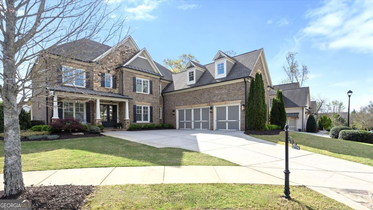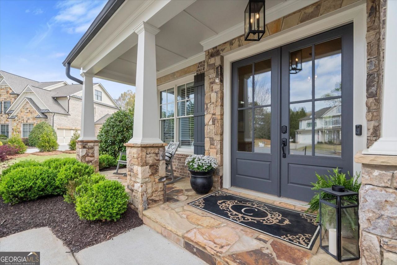 Cul-de-sac. Level yard. Private backyard. 3 car garage. Walkable to Downtown Crabapple. A rare opportunity to own a refined residence in one of Alpharetta's most sought-after communities. This 6 bedroom, 5.5 bath four-sides brick home offers what today's buyers are looking for...a level front and backyard, a private setting, and a truly walkable lifestyle. Set along tree-lined streets with sidewalks on both sides, the neighborhood is as inviting as it is connected. Enhancing that walkable lifestyle, a discreet neighborhood gate offers a rare and effortless connection to the surrounding area, opening to sidewalks in every direction...enjoy an easy walk to Downtown Crabapple, with Downtown Alpharetta just a short ride away, offering an exceptional mix of dining, shopping, and live music, along with the option to walk to a Friday night game at Milton High School. A covered front porch and grand double entry doors welcome you into a light-filled interior with soaring ceilings and beautiful hardwood floors throughout. A private office with glass French doors offers a flexible space for work or study. The two-story great room features a gas fireplace flanked by custom built-ins and a wall of windows that fills the home with natural light, with an open catwalk above. The space flows seamlessly into a generously sized dining room, ideal for gathering and entertaining. The kitchen is beautifully appointed with quartz countertops, white cabinetry, stainless steel appliances, and an oversized island with seating. An inviting breakfast area opens to a keeping room with a stone fireplace. A large walk-in pantry and expansive butler's pantry add both function and additional entertaining space. The main level includes an oversized guest suite with a full bath, along with a convenient powder room. Upstairs, a loft offers a perfect reading nook or flex space. The oversized primary suite features a sitting area and a spacious bath with double vanities, a soaking tub, an oversized shower, and a custom walk-in closet. Two secondary bedrooms offer private en suite baths, while two additional bedrooms are thoughtfully served by a well-appointed shared bath. A centrally located laundry room and abundant storage enhance everyday living. Outdoor living stands out with an expansive natural flagstone patio featuring custom-laid stonework, set within a private, level backyard with space to add a pool if desired. Complete with a three-car side-entry garage, this home offers a rare blend of lifestyle, function, and amazing location.