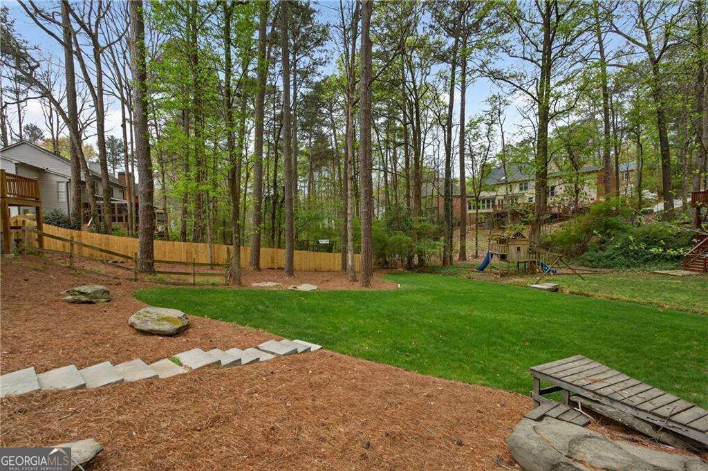 Beautifully updated home in the amazing Inverness neighborhood, full of character and charm that truly sets it apart. The incredible backyard is a standout feature, offering a huge, flat, park-like setting with a spacious deck and screened porch making outdoor living just as enjoyable as what's inside. Whether relaxing or entertaining, this space feels like a natural extension of the home in a peaceful, established setting. Located in the sought-after Inverness community in the heart of Roswell, this home offers an unbeatable location just minutes from Downtown Roswell and the Chattahoochee River. Inside, the main level features hardwood floors, a formal living room, and a spacious dining room, along with an updated kitchen. The layout flows seamlessly into the main living areas, where a wall of windows fills the space with natural light and creates an inviting atmosphere for both everyday living and entertaining. Just off the kitchen, access to the covered deck enhances the natural indoor-outdoor flow. Upstairs, the oversized primary suite offers a relaxing retreat with a newly updated ensuite bath highlighted by abundant natural light from above, a soaking tub, and a glass-enclosed shower for a spa-like feel. Generously sized secondary bedrooms provide additional comfort and flexibility. The finished terrace level adds even more versatility, offering space for a media room, gym, or additional living area, with walkout access to the patio and backyard perfect for extending gatherings outdoors. All set within an established Roswell community close to parks, dining, and the river, this home offers a lifestyle that's hard to match in one of North Atlanta's most desirable areas.