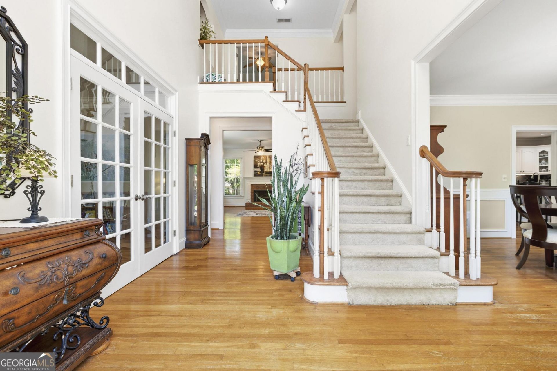 This captivating home is perfectly situated on a premium cul-de-sac lot in the highly sought-after Arvida community of Burnt Hickory Lakes. From the moment you arrive, you'll be drawn in by the beautiful curb appeal and meticulously maintained landscaping. Step inside to a stunning two-story foyer, with hardwood floors that flow seamlessly throughout the main level. The main level offers both functionality and flexibility, featuring a separate dining room and a spacious office or parlor with French doors-perfect for working from home or creating a quiet retreat. A well-appointed laundry room with a utility sink adds everyday convenience. The open-concept kitchen features a large island and seamlessly connects to the living room, creating an ideal space for everyday living and entertaining. Upstairs, a double staircase leads to a thoughtfully designed layout. The primary suite is a true retreat, featuring a cozy fireplace, his-and-hers closets, and a large ensuite bathroom with double vanities. Two secondary bedrooms share a Jack-and-Jill bathroom, while a third bedroom enjoys its own private ensuite. But what truly sets this home apart is the backyard. Designed as a private retreat, this outdoor space is nothing short of exceptional. Just off the kitchen, a spacious screened-in porch invites you to relax and unwind while overlooking the resort-style inground pool. Whether you're enjoying a quiet morning coffee, hosting friends for a summer gathering, or spending evenings by the pool, this space was made for both relaxation and entertaining. The backyard offers a rare level of privacy, creating a peaceful setting that feels like your own personal oasis. With seamless indoor-outdoor flow and multiple areas to gather, this is the kind of space you'll use year-round and one that truly makes this home unforgettable. This home also offers incredible storage, including a dedicated staircase to the attic, additional walk-out attic space above the garage, expansive attic storage above the second level, and a workshop in the garage. Burnt Hickory Lakes is a well-established community known for its award-winning amenities, large lots, beautiful landscaping, scenic lakes, walking trails, and access to highly rated schools. Located on a quiet cul-de-sac street and within walking distance to these incredible amenities, this home truly offers the perfect blend of comfort, functionality, and lifestyle.