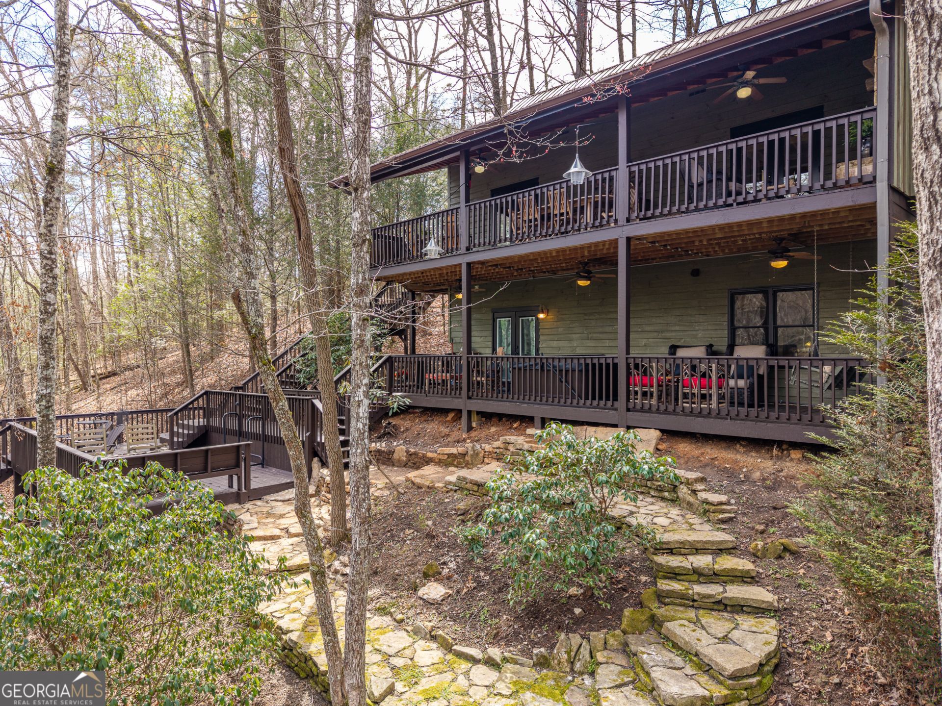 The absolute pinnacle of mountain living awaits at this rare riverfront retreat where the rushing waters of Fightingtown Creek provide a constant soulful soundtrack to daily life. This sanctuary for the soul offers premier catch-and-release trout fishing right from the backyard where the banks are lined with ancient hardwoods and vibrant mountain laurel. A picturesque hillside boardwalk winds down to the water leading to a tiered outdoor firepit nestled directly at the edge of the creek. Inside, two custom chair lifts removes the barrier of climbing stairs and ensures every level of this multi-story haven remains effortlessly reachable for everyone, prioritizing comfort and accessibility throughout the home. The architectural design celebrates these surroundings through a vaulted open-concept living area featuring soaring two-story windows and an interior aesthetic that offers the perfect blend of warm wood paneling and crisp sheetrock walls. Culinary enthusiasts will adore the kitchen's organic style highlighted by leathered granite countertops with rugged natural edges and a peninsula featuring a built-in wine rack for effortless entertaining. Outdoor entertainers will find paradise on the upper wraparound deck which features a majestic outdoor fireplace that invites guests to linger long after the sun sets. Whether enjoying the warmth of the interior fireplaces or gathered around the tiered outdoor firepits, the connection to nature remains seamless. The expansive outdoor living spaces include a lower-level oasis complete with a hot tub and swing. Inside, the primary suite offers a private escape with its own Juliet balcony while the terrace level provides a full den, dry bar, and flexible spare rooms. This residence has never been used as a short-term rental, preserving an intimate sense of peace and privacy. Experience the lifestyle that only a true creek-front estate can offer by scheduling a private tour today.
