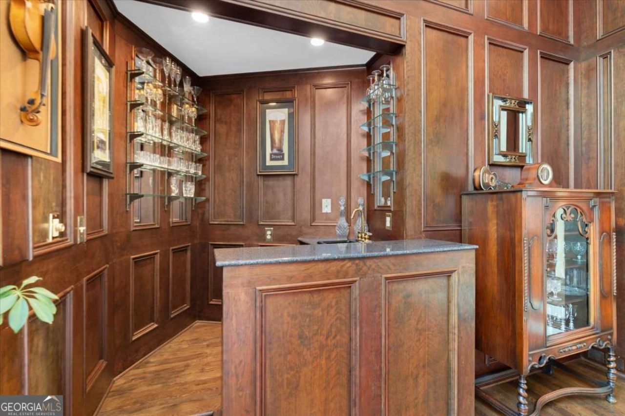 Welcome to an extraordinary European-styled villa offering the ultimate private resort experience. Perfectly positioned between two scenic waterways-Big Cedar Creek and Lake Creek-this remarkable estate delivers unmatched beauty, privacy, and craftsmanship. From the moment you arrive, you'll notice the thoughtful details and historic touches that make this home truly one-of-a-kind. The exterior is crowned with a stunning copper roof, adding timeless elegance and durability, while the stone pillars feature the same granite used on the Ford Buildings at Berry College-tying the property to local heritage. Inside, the study and staircase leading to the primary suite feature elegant banisters and handrails overlooking the suite below-each sourced from the historic Chicago Paramount Movie Theatre. The primary closets continue this distinctive character with authentic theatre doorknobs, creating a cohesive and truly one-of-a-kind design.The kitchen is a showpiece, featuring rare Coppes Napanee cabinetry-creators of the original Lazy Susan-with one in each corner cabinet, along with premium Viking oven and microwave appliances. The great room is anchored by a stunning Colonial Eclipse coal-burning stove dating back to the early 1900s, blending timeless character with warmth and charm. Each space throughout the home has its own personality, enhanced by high-end finishes sourced from across the United States and Europe. Step outside to your resort-style oasis. The outdoor kitchen overlooks the pool area and is equipped with Viking appliances, a Belgium-imported sink, and ceiling beams reclaimed from a North Carolina tobacco barn-adding rich history and rustic elegance. Enjoy the inground pool, relaxing hot tub, and private tennis courts, all surrounded by breathtaking views of the creeks. The main residence offers three spacious bedrooms, each with its own private bath, plus an additional full bath featuring beautiful Italian tile. Above the garage, a fully equipped apartment-complete with bedroom, full bath, kitchen, and living area-has previously served as a successful Airbnb, offering excellent income potential or private guest accommodations. Surrounded by pasture land in both the front and rear, this property provides space, serenity, and versatility-ideal for relaxation, entertaining, or even hobby farming. Conveniently located just minutes from Cave Spring, Cedartown, and Rome, you'll enjoy the perfect balance of peaceful seclusion and accessibility. This is more than a home-it's a lifestyle unlike any other. A truly must-see property to fully appreciate all it has to offer. Call today to schedule your private showing.