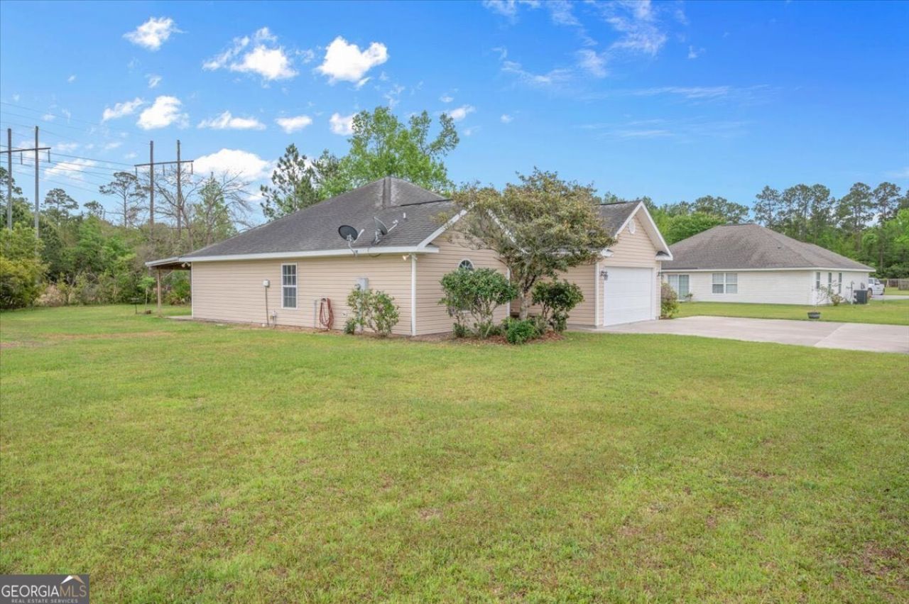 Welcome to 163 Haley's Place, a well-maintained 3 bedroom, 2 bathroom home offering space, privacy, and value in a desirable Brunswick setting. Situated on a .63 acre flag lot, this property provides a quiet, tucked-away feel while backing up to a wooded area for added privacy. With 1,384 square feet, the home features a split floorplan that balances openness with separation between the master suite and guest bedrooms. The kitchen includes an island and pantry, creating a functional space for everyday living that flows easily into the main living area. Step outside to a covered back patio, perfect for relaxing or enjoying the peaceful surroundings. The spacious lot offers room to spread out, garden, or simply enjoy the added privacy that is hard to find at this price point. A two car garage, solid condition, and thoughtful layout make this home an excellent opportunity for buyers looking for comfort, space, and value in the neighborhood.