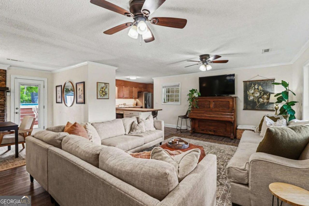 Situated on a beautiful 1-acre lot in a peaceful setting, this home offers the perfect blend of privacy and convenience, just minutes from I-75 and an easy drive to Calhoun and Dalton, yet it truly feels away from it all. The home enjoys lovely views and lots of natural light throughout the day, especially from the south-facing front windows. Inside, you'll find a thoughtfully updated, open-concept living, dining, and kitchen space designed for gathering and entertaining. The kitchen is truly the star of the home featuring granite countertops, a stylish tile backsplash, soft-close custom cabinetry, oversized deep pot drawers, and a custom-built island with seating and a beautiful butcher block top. The home features no carpet, with hardwood floors in the bedrooms and durable LVP flooring throughout the main living areas. Modern upgrades include a tankless water heater, installed security system, and a Nest thermostat for comfort and efficiency. Step outside to your own private retreat: a fully fenced backyard with a sparkling pool and an expansive composite (Trex-style) deck, perfect for relaxing or hosting unforgettable gatherings. Two outbuildings, including a shed and workshop, provide excellent storage and workspace, while the ample parking makes entertaining easy. This is a home designed for both everyday comfort and memorable moments whether you're enjoying a quiet evening under the stars or hosting friends at the pool!