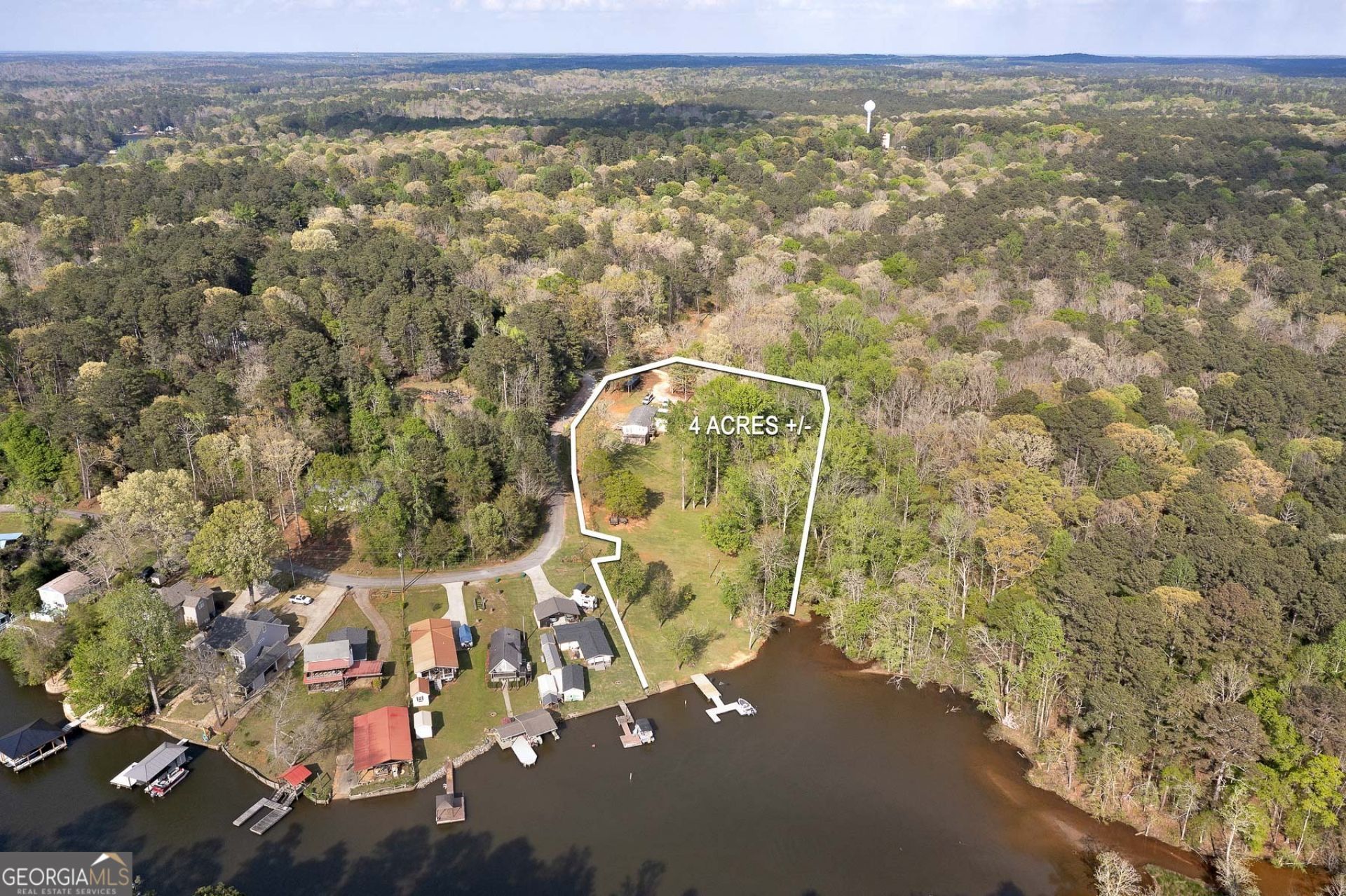 Here it is! Rare opportunity to own almost 4 acres of DEEDED property on the water. Two lots, 1 in Alcovey Shores, the other acreage adjacent to it. See the aerial in pictures. Renovated, this would be an awesome home. Having two lots, you could make this a family compound. Floating dock and over 100 feet of shoreline.