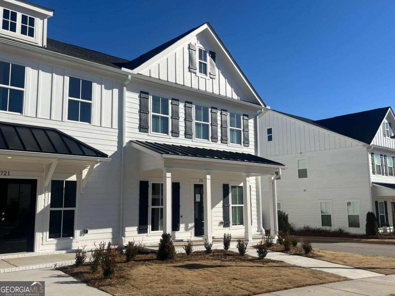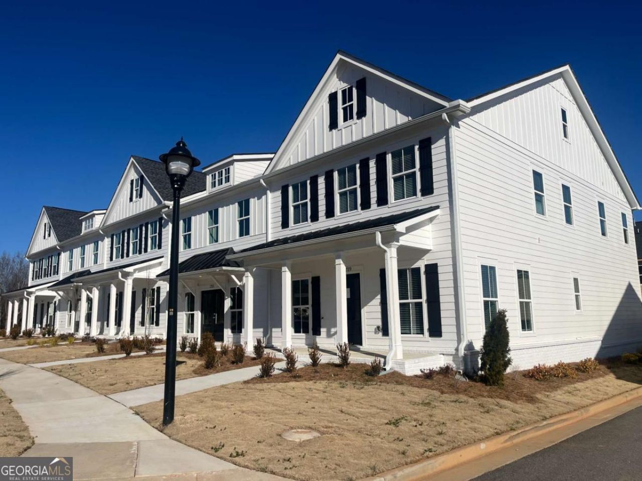 Beautiful private end unit townhome in Eastmore Conyers premier mixed use luxury residential community only 23 miles from downtown Atlanta. Open concept main floor with large great room with fireplace that overlooks gourmet kitchen with oversized island with quartz countertops and large dining area. Main floor also includes 2 1/2 car garage perfect for additional storage not found in most townhomes. Upstairs includes huge owners suite with walk in closet and spa bath including double vanities and tiled frameless shower with bench seat. Upstairs also includes a large loft that serves as a great second great room plus two secondary bathrooms with shared bath and large laundry room. Community includes multiple parks, dogs parks, pavilions, play grounds and firepits and will include pools in the future. Community will also include 150,000 square feet of retail and commercial space in the future. This townhome also includes stainless side by side fridge and faux wood blinds throughout. Tennant must fill out on line application and credit check. This townhome is a must see!!!!!!