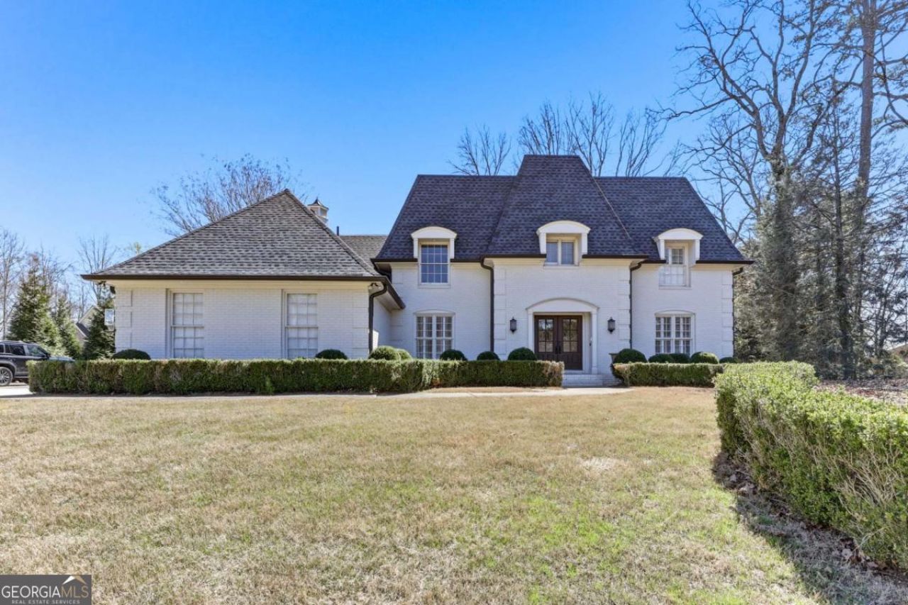This French Chateau-style home is sitting pretty on the highest point in the Chattahoochee Country Club neighborhood, allowing endless views of Lake Lanier. Located less than a mile from the clubhouse and within walking distance to the golf course, finding ways to fill your free time will be a breeze. The 5 bedroom, 3 1/2 bathroom home features an open floor plan on the main level with an easy flow from the living area to the kitchen and breakfast area, which is drenched in sunlight. The primary suite is on the main level, and the ensuite bathroom has a lovely soaking tub where you can unwind after a day of work or play. Upstairs are three additional bedrooms, two full bathrooms, and a private office nook. There are upgrades throughout, including hardwood floors, marble countertops in the kitchen and bathrooms, and stainless steel appliances. The finished attic offers additional space that can be used as a bonus room or home office, and the potential to expand to meet your needs. Schedule to see this beauty today!