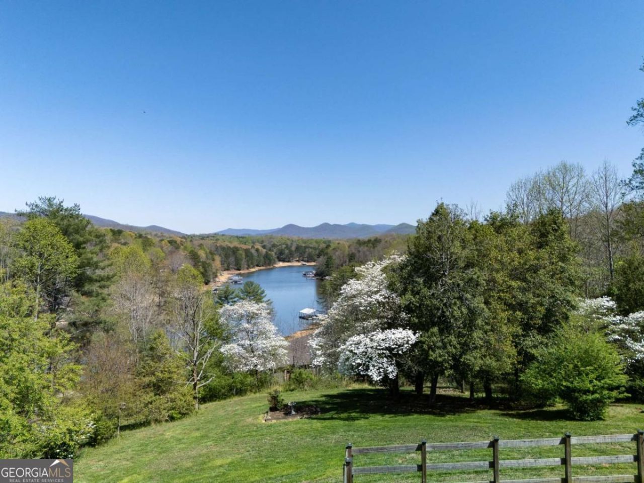 Experience year-round mountain and lake views from this beautifully maintained 5BR/3BA, 3,464 sq ft home located just minutes from downtown Blairsville and a short walk to a Lake Nottely boat ramp to put your toys/boat in the water. Situated on a gentle 0.86-acre lot, this property offers the perfect blend of convenience, space, and North Georgia scenery. The main level features true one-level living with three bedrooms, two full baths, a spacious living room with wood floors, a cozy fireplace, and large windows framing layered mountain and water views. The kitchen includes CUSTOM cabinetry, modern appliances and an eat-in layout, with easy access to the attached two-car garage. The finished terrace level is ideal for extended family, guests, or entertaining-complete with two additional bedrooms/flex space/hobby room (currently used as a quilting room), a full bath, a large second living area, kitchenette, and walk-out access to a second deck overlooking the low-maintenance yard. Septic approved for a 3 bedroom. Tankless water heater.