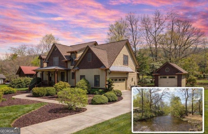 Experience peaceful riverfront living in this beautifully crafted 4-bedroom, 3-bath home designed for comfort, relaxation, and effortless enjoyment. Perfectly positioned on a prime lot and a half with coveted Hiawassee River frontage-renowned for trophy trout fishing and stocked twice yearly-this property offers a rare blend of natural beauty and recreation. Wake up to soothing river views and unwind on the expansive covered deck, complete with a fully equipped outdoor kitchen and stunning stacked stone fireplace-ideal for quiet mornings or memorable evenings with family and friends. Inside, the main level is thoughtfully designed for convenient living, featuring rich hickory hardwood floors, custom Mountain Laurel railings, a striking stacked stone fireplace, and a warm, inviting great room. The main level primary suite opens directly to the deck, creating a private sanctuary where nature and tranquility meet. Also on the main level are updated kitchen appliances, a formal dining room, a dedicated office space, and an additional full bath-all perfect for both everyday living and entertaining. Upstairs, you'll find three spacious bedrooms and a large hall bath, providing ample room for guests and family. Additional highlights include a side-entry attached garage as well as a detached garage for extra storage with workshop space. Known for its Trophy Trout Fishing, the Hiwassee River is a premier destination for anglers and outdoor enthusiasts alike. Residents of Hi River Country enjoy a welcoming community atmosphere, paved roads great for walking and riding, and close proximity to Lake Chatuge, Downtown Hiawassee, trails and all the best of North Georgia Mountain living. Whether you're seeking a full-time residence, a serene retirement retreat, or a high-performing short-term rental, this meticulously maintained and exceptional riverfront home delivers an unmatched combination of lifestyle, location, and income potential.