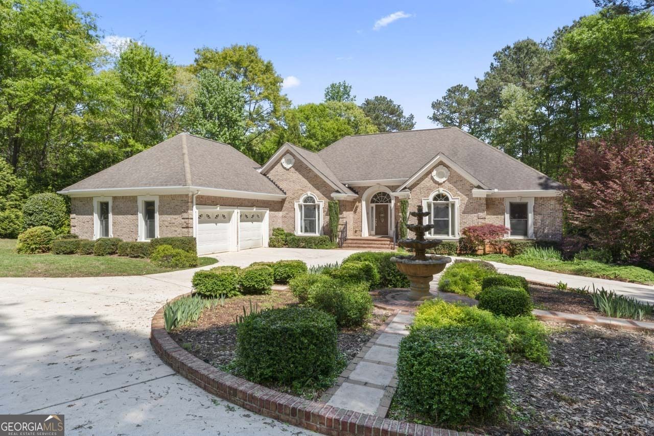 Welcome to this custom-built masterpiece, where thoughtful design & timeless elegance meet. From the moment you arrive, you are welcomed by a grand circular driveway adorned w/a stunning centerpiece fountain, setting the tone for the exceptional home that awaits. Mature hydrangeas & azaleas frame the property , while flourishing blueberry bushes offer a delightful farm-to-table touch right in your own backyard. Step inside & a soaring 2-story foyer continues the sense of grandeur. The main level offers an ideal layout for both entertaining & everyday living, featuring a formal living room & an elegant formal dining room where a lighted tray ceiling creates an atmosphere of sophistication perfect for hosting memorable gatherings. The heart of this home is the chef's kitchen, a true culinary haven featuring over & under cabinet lighting, a skylight over the sink flooding the space w/natural light, & an abundance of cabinetry offering unmatched storage. The expansive kitchen island anchors the space beautifully, while the stainless steel appliances ensure the serious home chef has everything they need. A sun-drenched breakfast area overlooks the back deck, making your morning coffee feel like a daily retreat. Unwind in the stunning sunroom boasting a vaulted ceiling or gather around the fireplace in the dramatic 2-story living room, where soaring skylights bathe the space in natural light. Luxurious heated floors in the kitchen, sunroom, and living room add a touch of everyday indulgence underfoot. The luxurious primary suite on the main floor is a true sanctuary, offering serene backyard views & a breathtaking glimpse of the lake. The spa-inspired primary bath features dual vanities, a private water closet, a beautifully tiled walk-in shower, and not one, but 2 generously sized walk-in closets outfitted with custom racks, shelves, & shoe cubbies for the ultimate in organization & style. Also on the main level, a spacious secondary bedroom offers incredible flexibility, with the potential to be divided into 2 separate bedrooms, perfect for guests, a home office, or a growing family. A full bath with double vanity serves this wing of the home beautifully. A large linen closet located in the main floor hallway provides excellent additional storage, keeping linens & essentials neatly tucked away & easily accessible. Everyday living is made effortless with a well-appointed laundry room featuring additional cabinetry for extra storage, keeping everything neat & organized. A conveniently located 1/2 bath rounds out the main level perfectly. Step outside from the main floor onto the beautiful wooden deck, the perfect spot for outdoor dining, grilling, or simply soaking in the peaceful surroundings. Car enthusiasts & outdoor lovers alike will appreciate the extra-large 2-car garage, offering generous space for vehicles along w/a dedicated golf cart bay complete with its own garage door, a rare and wonderful bonus for those who love to explore the neighborhood in style. Head upstairs to discover even more impressive living space. A versatile loft area provides the perfect setting for a home office, media room, playroom, or reading retreat, the possibilities are endless. The upper level also features an additional bedroom bathed in natural light from charming skylights, complete w/its own private full bath & a spacious walk-in closet, offering comfort & privacy that guests or family members will truly appreciate. The partially finished basement expa