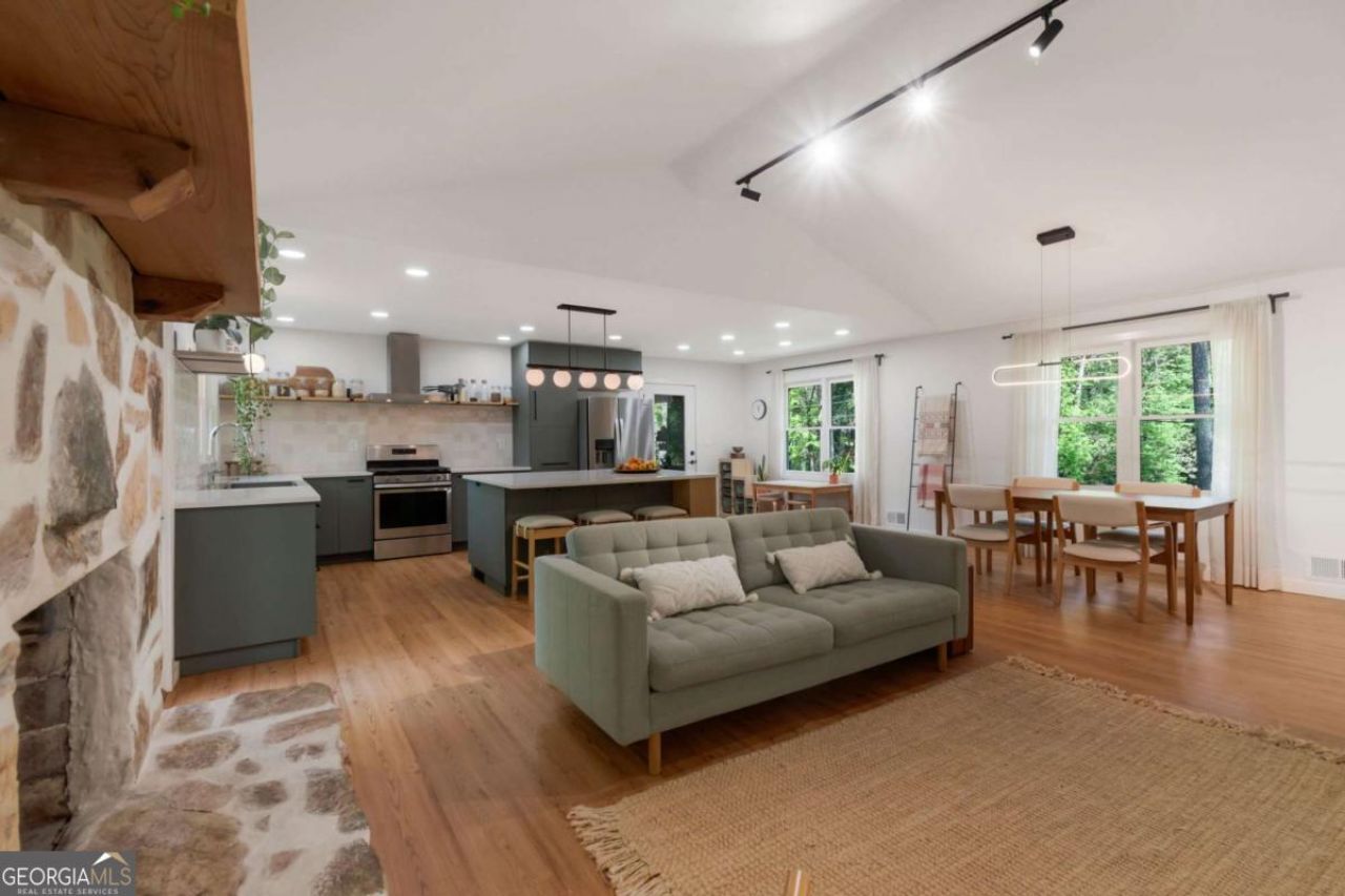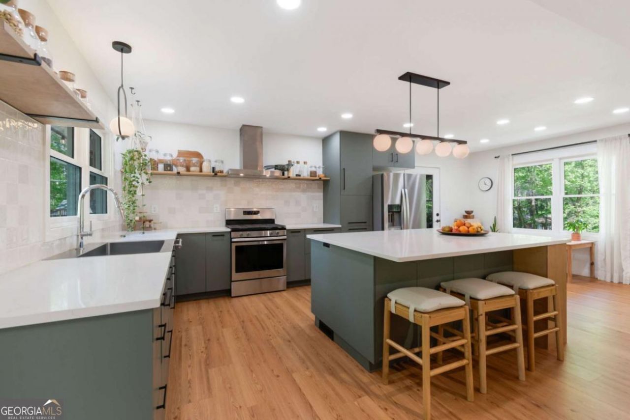 If you've been looking for a home that's been truly rethought - not just updated - you'll feel it here right away. Completely renovated in 2022, this home was opened up and redesigned into a seamless kitchen, dining, and living space that feels both functional and inviting. The layout just makes sense - easy to live in, easy to entertain in, and comfortable for everyday life. The kitchen is the true centerpiece. Thoughtfully designed by someone who actually cooks, it features an oversized island with plenty of room for prep, serving, and gathering, along with abundant storage. Pull-out cabinetry keeps everything organized and within reach, while custom made open shelving adds a clean, modern feel and style. The garage is conveniently located right off the kitchen, making day-to-day living-like bringing in groceries-simple and efficient. The living area is warm and welcoming, complete with a wood-burning fireplace that adds just the right touch of character without taking over the space. Step out from the kitchen onto the deck and you'll see how naturally the home extends outdoors - perfect for hosting or just unwinding. The backyard is already set up for those who enjoy gardening and sustainability, with established garden beds and compost areas in place. The renovation went far beyond surface updates. In 2022, the home received new sheetrock on walls and ceilings, new windows, new flooring, and fully rebuilt bathrooms. Popcorn ceilings are gone, replaced with clean, modern finishes. You'll also find all new appliances, updated lighting and hardware throughout, fresh interior and exterior paint and new garage doors. Out back, a spacious workshop/shed offers flexibility for hobbies, storage, or projects that need their own space. Located in a quiet neighborhood with easy access to downtown Woodstock, you get the best of both worlds-peaceful surroundings with restaurants, shops, and local events just minutes away.