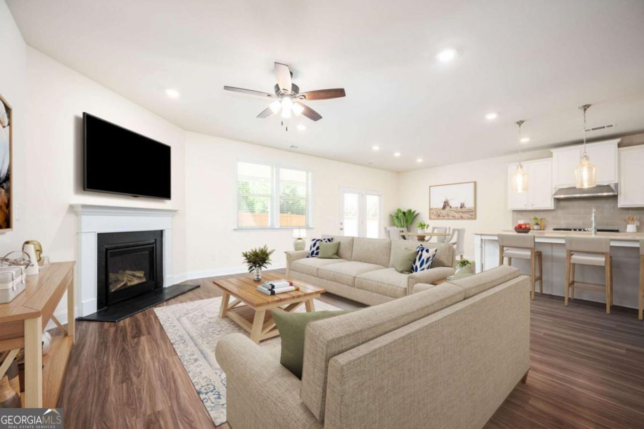Up to $4500 in lender credits with the use of our preferred lender! This stunning 4-bedroom, 4-bathroom residence is situated in the sought-after Victory Preserve community, ideally located between Downtown Acworth and Downtown Woodstock. Upon entering, you'll be greeted by a spacious floor plan filled with natural light from expansive windows. At just six years old, this updated and modern energy-efficient home features elegant finishes and thoughtful design throughout. The main level boasts an inviting open floor plan, seamlessly connecting the living area to the chef's kitchen, perfect for entertaining. The upgraded kitchen showcases stunning white cabinets, quartz countertops, a large center island, and all stainless steel appliances. The formal dining room features classic chair molding and wainscoting, ideal for hosting gatherings. Unwind by the gas fireplace or relax on your private covered patio overlooking a level, fenced backyard. A guest bedroom and full bath on the main floor make hosting effortless. Upstairs, discover a large bonus space, perfect for a game room, office, workout area, or second living room. The expansive laundry room with a walk-in storage closet eliminates the hassle of carrying baskets up and down stairs. The primary suite offers comfort and luxury, featuring dual vanities, a soaking tub, a separate shower, and a massive walk-in closet. Each secondary bedroom upstairs includes its own private en-suite bathroom, providing privacy and convenience for family or guests. Enjoy all the amenities of Victory Preserve, including a dog park, a gazebo, lighted streets, and sidewalks. Live near Patriots Park, Hobgood Park, Eagle Drive shopping, Lake Allatoona, Red Top Mountain State Park, and the vibrant downtown areas of Woodstock, Kennesaw, and Acworth. Zoned for top-rated Cherokee County schools: Boston Elementary, E.T. Booth Middle, and Etowah High School. Don't miss the included floor plans at the end of the photos! The home faces East. Some photos are virtually staged.