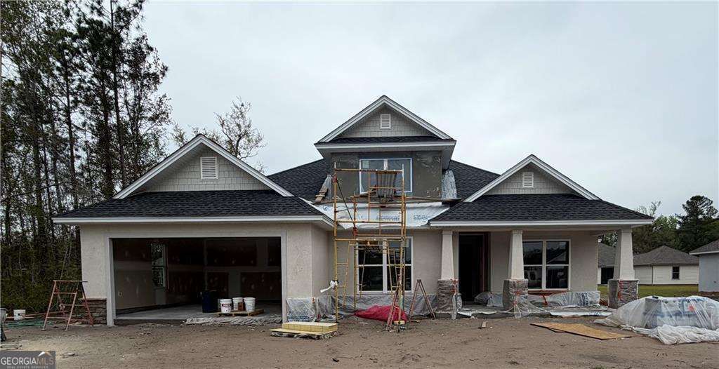 This beautiful 4 bedroom, 2 bathroom stucco home has a double garage with opener and 2 remotes. It has a masonry foundation finish at front and masonry column bases at front columns. This house has 30 year architectural shingles. The foyer has a 10' ceiling and the remainder of the house has 9' ceilings. This home features custom recessed panel painted cabinets in bathrooms, kitchen, and laundry room. There are beautiful solid surface countertops in the kitchen and bathrooms. The main bathroom is complete with a garden tub and a separate tile shower with glass enclosure. The kitchen, dining room, foyer, great room and main bedroom are finished with 4 5/8 crown molding. Carriage lamps and carriage style garage door trim are included. Ceiling fans are included at the great room, bedrooms, and back porch. There is a front porch, rear porch and a grilling pad in rear. _______________________________________________________________________________________