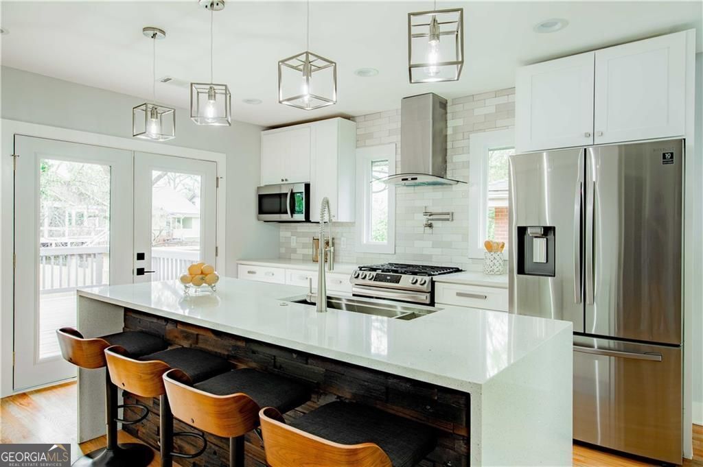 Welcome home to this completely renovated, mid-century inspired ranch boasting 3 spacious bedrooms, 2 luxurious baths, multiple outdoor living spaces. Chef's kitchen with stainless appliances, custom cabinets, stone backsplash and breakfast bar. Kitchen overlooks the spacious living, dining, common space perfect for entertaining. Retreat to the magical master suite with spa like bath and generous owner's closet. Enjoy the private backyard from the patio or watch the world pass by from the oversized front porch! Exceptional location - convenient to Oakhurst Park, East Lake Marta, Hawk Hollow, Oakhurst Dog Park, Oakhurst Village, and more.
