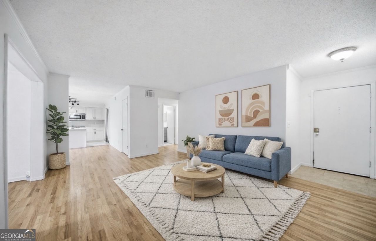 This beautifully renovated 2-bedroom, 2-bath lower-level condominium offers easy access with minimal steps and seamless entry to the outdoors-perfect for everyday convenience and effortless living. Inside, the open-concept layout showcases a stunning kitchen featuring quartz countertops with a waterfall edge, stainless steel appliances, and generous prep space. Real hardwood floors run throughout the main living areas, adding warmth and continuity. The sunroom provides a peaceful retreat with wooded views, creating the perfect spot for morning coffee or a quiet workspace. Both bedrooms offer ample closet space, while the two renovated bathrooms feature new tile flooring, updated vanities with quartz countertops, and modern lighting. Cross Creek's resort-style amenities include a gated entrance, 18- hole executive golf course, three swimming pools, four tennis courts, pickleball, a restaurant and bar, fitness center (optional membership), and over two miles of walkable streets within the community. Ideally located on a quiet, dead-end street in Buckhead, this home offers quick access to the airport, Vinings, Midtown, Downtown, GA-75, GA-85, GA-400, and popular destinations like Westside Provisions District-making it as convenient as it is charming.