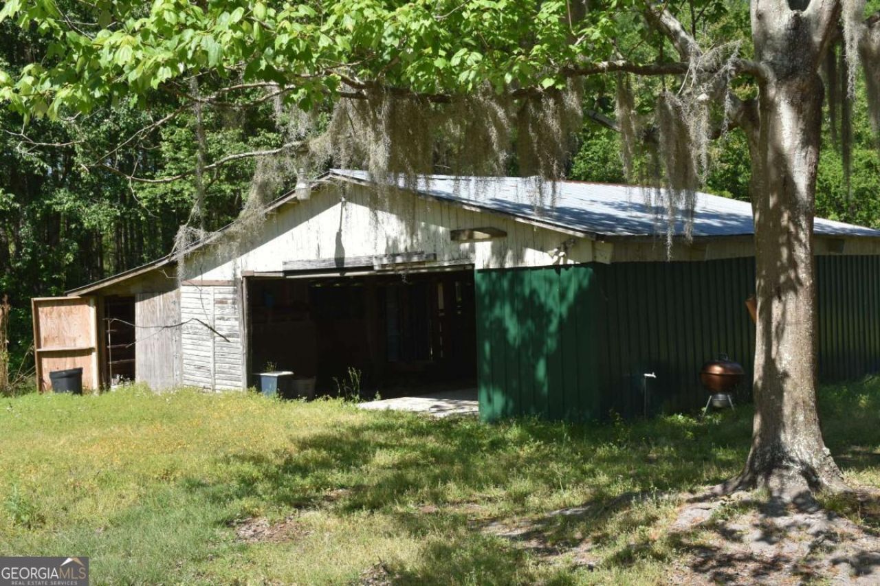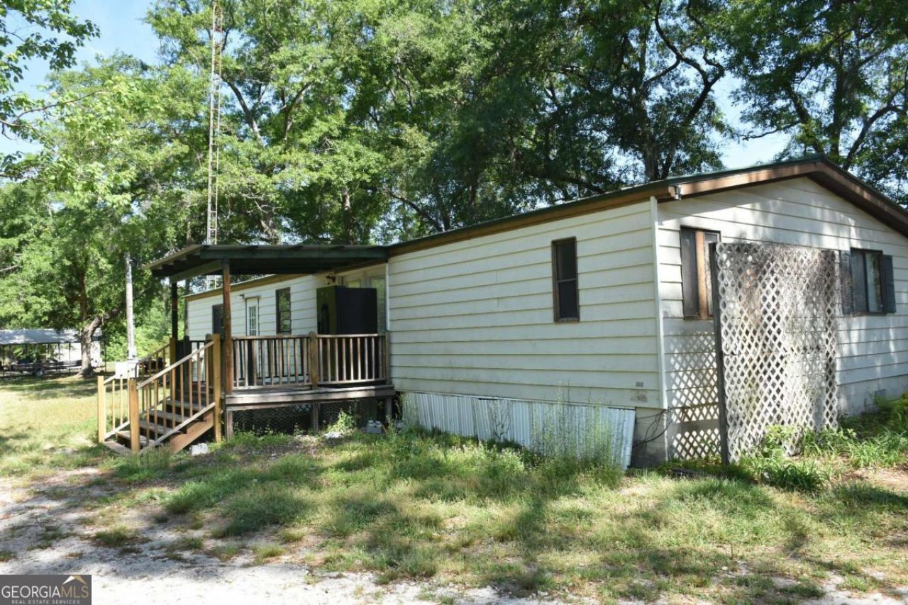 Three-bedroom, two-bathroom home on 1 acre on State Highway 301. Exterior features include a metal roof, front covered porch, pole barn chicken coop, and large shade trees. Interior features include a split floor plan, a mix of carpet and vinyl flooring, and the property needs work, sold as is.