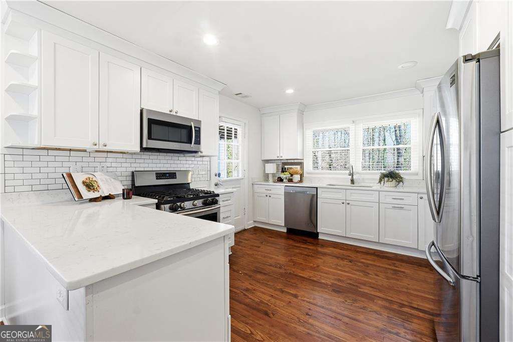 Tucked away on nearly an acre in the heart of Tucker, this five-bedroom, three-and-a-half-bath ranch tells a story of space, comfort, and thoughtful updates designed for the way you live today. From the moment you arrive, dual driveways with a convenient turnaround and a one-car garage set the tone for easy, everyday living. Inside, the renovated kitchen anchors the home with crisp white cabinetry, quartz countertops, and stainless steel appliances-an inviting place where mornings begin and gatherings naturally linger. The oversized primary suite feels like a true retreat, complete with vaulted ceilings, a walk-in closet featuring a well-designed closet system, and a beautifully renovated bath. Dual vanities with stone countertops, a soaking tub, and a tiled walk-in shower create a spa-like escape at the end of the day. Every bathroom throughout the home has been updated, offering a cohesive, move-in-ready feel from top to bottom. The finished basement expands the story, adding two additional bedrooms and a full bath-one bedroom easily doubles as a living area, office, or flex space. With laundry on both levels, the layout is ideal for multi-generational living, guests, or even an investment opportunity. Step outside to enjoy two pea gravel patios, a back deck, and a generous yard that offers privacy, room to roam, and endless potential for outdoor entertaining. Just up the street, Henderson Park and Lake Erin await with a playground, community garden, and trail access-bringing recreation and nature right to your doorstep. Minutes from downtown Tucker, with quick access to I-85 and I-285, shopping, dining, parks, and Mercer University, this home blends space, character, and modern updates on a rare, expansive lot in a location that truly has it all.