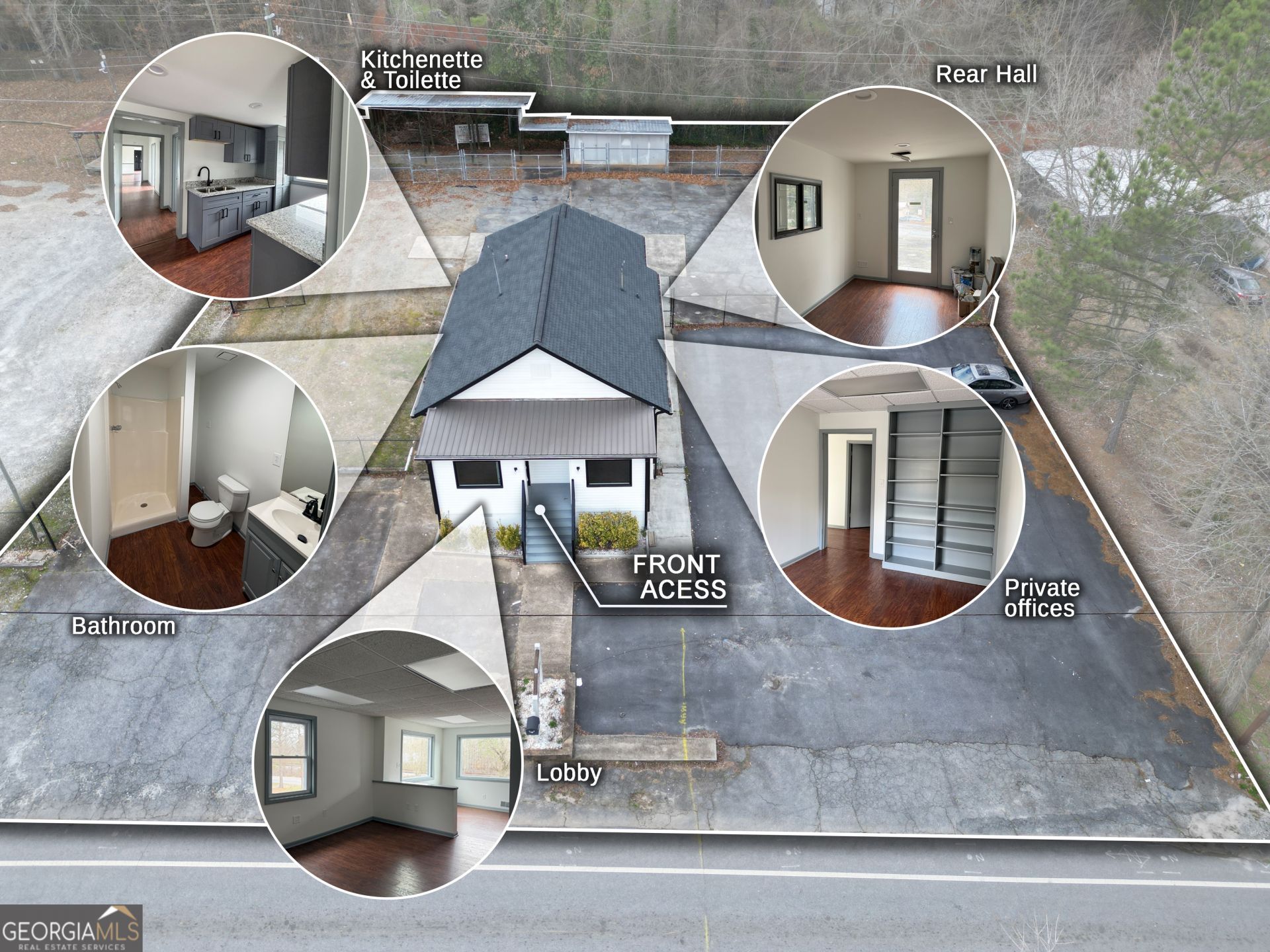 Great space, unbeatable location! This unique commercial offering in Lawrenceville features two adjacent properties sold together, totaling approximately 1.24 acres on a high-visibility main road. The property includes a 3,620 SF warehouse equipped with loading ramps, ideal for efficient handling of equipment, materials, and inventory. The layout offers two additional rooms for office or storage use, a half bathroom, kitchenette, and a large bonus space suitable for a conference room, showroom, or training area. Additional features include approximately 500 SF of storage, a central parking area, and a fully fenced lot-perfect for contractors, trades, or distribution operations. Adjacent to the warehouse, the beautifully updated single-story 1,756 SF office building features seven private offices, a welcoming reception area, modern wood flooring, and a kitchen with granite countertops. The space also includes one full bathroom, one half bathroom, front and side entrances, and ample parking for staff and clients.