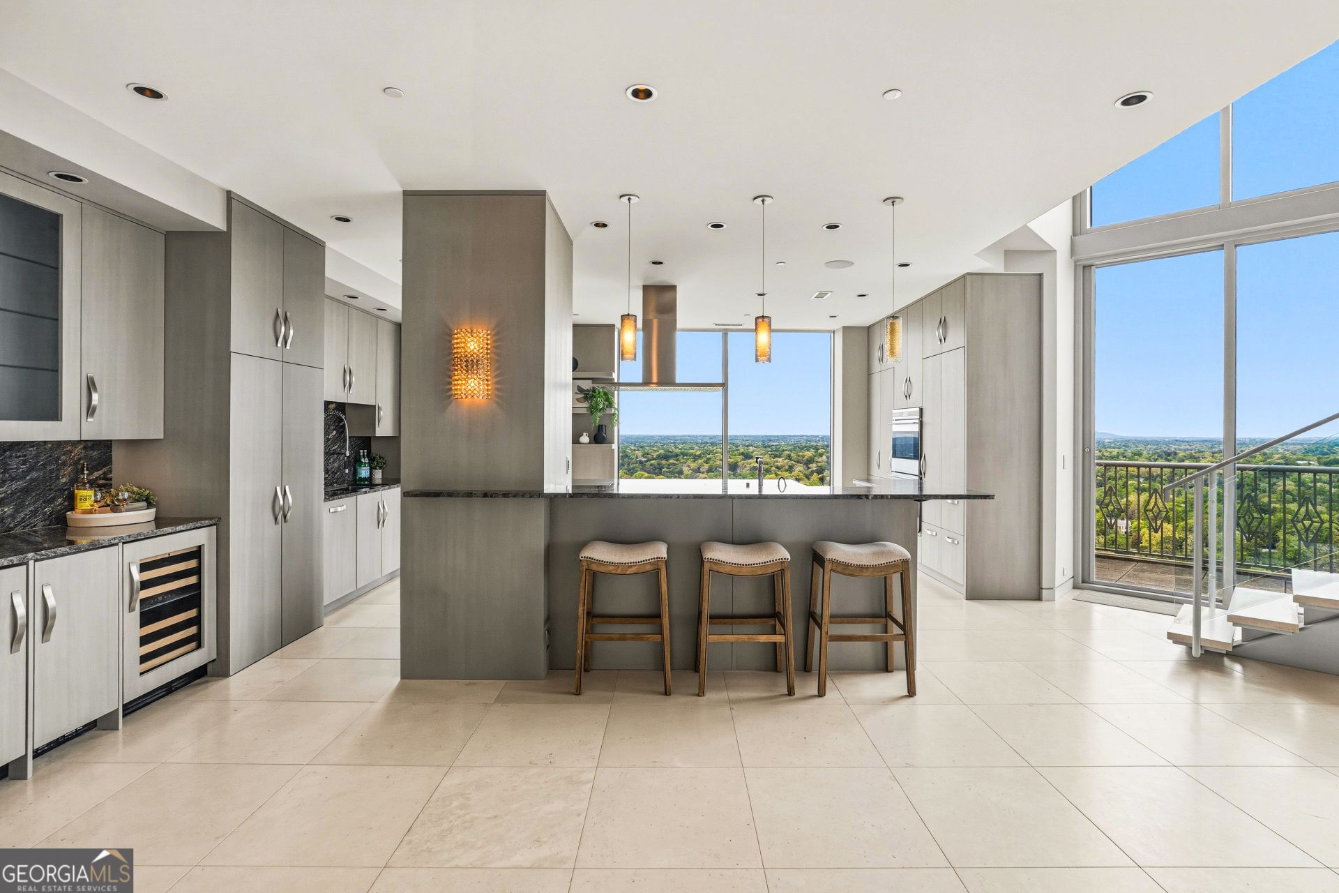 Perched atop the 26th and 27th floors of The Gallery, this one-of-a-kind penthouse delivers an unparalleled blend of sophistication, scale, and designer finishes following a $1M+ renovation. Framed by unobstructed city views and expansive outdoor living, the residence is defined by a dramatic open floorplan, floor-to-ceiling windows, and a striking floating staircase with limestone treads, glass panels, and stainless railings-all anchored by 24x24 limestone flooring and a breathtaking 10-foot Swarovski crystal chandelier. At the heart of the home, a showstopping Design Galleria kitchen rivals the finest European designs, featuring custom cabinetry with soft-close systems, dual pantries, and top-tier appliances including Wolf ovens and cooktop, Sub-Zero refrigeration with drawers, Bosch dishwashers, warming drawers, double wine fridges, ice makers, Viking trash compactors, a built-in espresso machine, and filtered hot water. Seamlessly integrated Crestron smart home technology elevates everyday living, controlling lighting, climate, shades, entertainment, and security with ease. Custom lighting throughout, all on dimmers, enhances the home's refined ambiance. The primary suite offers a true spa experience inspired by Miami's finest retreats, complete with a Kohler air tub, Toto toilet, THG French fixtures, mosaic tilework, floating double vanity with LED lighting, and a Thermasol programmable steam shower with rain head and bench. A boutique-style, room-sized walk-in closet and custom floor-to-ceiling cabinetry with integrated storage complete the suite. Upstairs, Porcelanosa hardwood floors extend through all bedrooms and laundry, while a beautifully appointed guest suite features a Carrara marble vanity, frameless shower, and designer finishes. The living room showcases a Porcelanosa white rock feature wall with a Dimplex fireplace, creating a stunning focal point for entertaining. Additional highlights include energy-efficient zoned HVAC with commercial-grade air handlers, whole-house water recirculation, a private storage unit, and three deeded parking spaces. Residents of The Gallery enjoy a full-service lifestyle with a strong HOA and exceptional amenities including a state-of-the-art fitness center, heated outdoor pool, tennis court, guest suites, business center, club room with catering kitchen, theater/screening room, outdoor fireplace and grilling areas, dry cleaning services, and curated social spaces. The building's unique art program features rotating installations from local artists, with quarterly gallery receptions and community events. This is a rare opportunity to own a truly irreplaceable penthouse-where elevated design, advanced technology, and resort-style amenities converge in the sky. Welcome home.