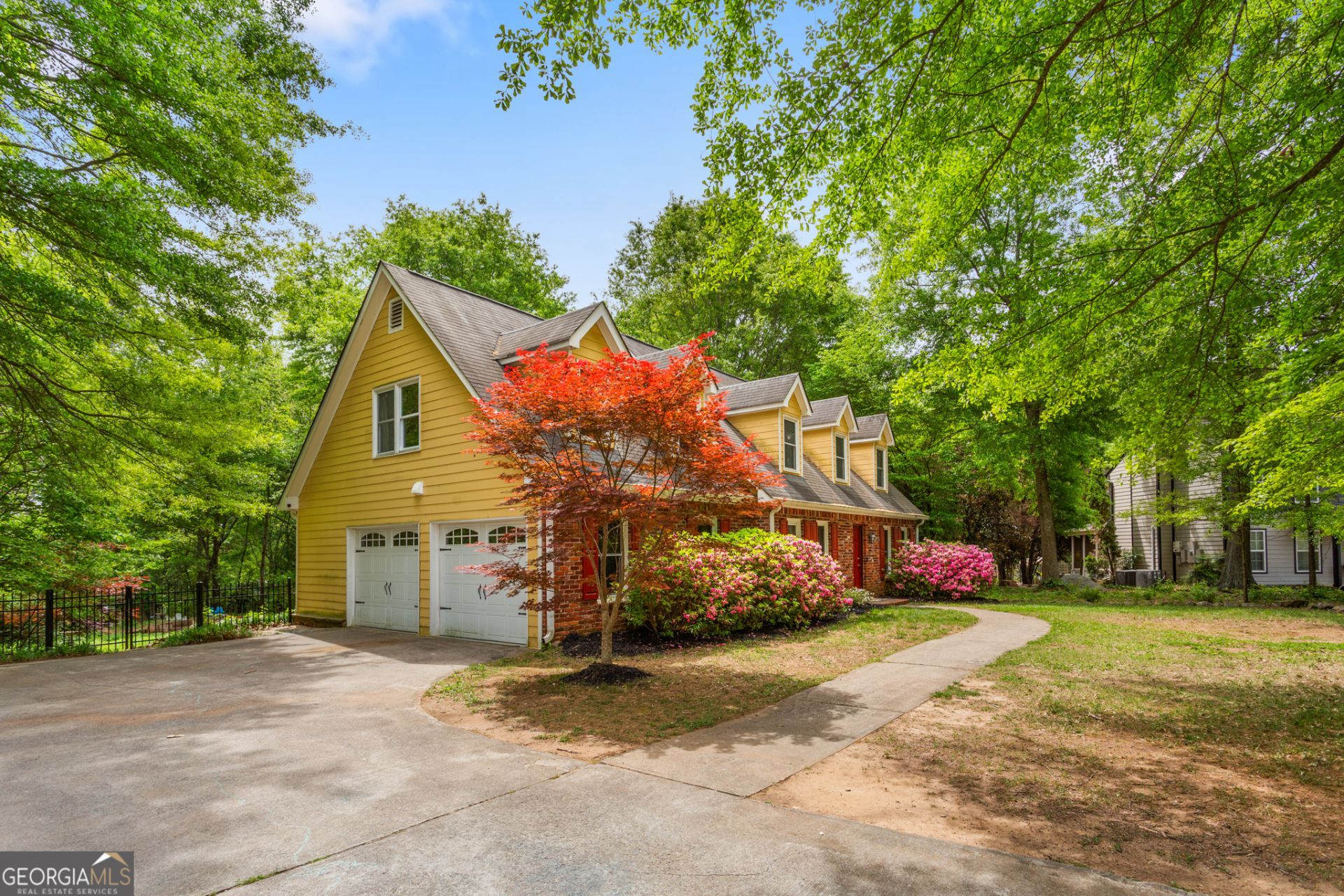Located at the end of a quiet cul-de-sac in the desirable Farmington subdivision, this charming 4-bedroom, 2.5-bathroom brick-front traditional home offers 1,988 square feet of thoughtfully updated living space on a generous 0.6-acre lot. The interior features a spacious, light-filled open floor plan perfect for entertaining, highlighted by a cozy family room with a gas log fireplace and a versatile eat-in kitchen complete with white and grey cabinetry, a butcher block island, a dedicated coffee bar, and stylish barn door accents. Upstairs, the master suite serves as a private retreat with dual closets and a modern, updated en-suite bathroom featuring a bath/shower combo. A large finished bonus room with a convenient back staircase provides the ideal footprint for a home office, playroom, or media center.The outdoor living spaces are equally impressive, centered around a gorgeous screened-in porch that overlooks a private, backyard. Landscaped for both beauty and function, the rear grounds include a stacked stone fire pit and a dedicated walkway leading to the front of the home. For the hobbyist, the oversized two-car side-entry garage features an additional storage room perfectly suited for a workshop. With maintenance-free Hardie Plank siding, energy-efficient windows, and no HOA restrictions, this residence combines peace of mind with the freedom to truly make the space your own. Situated within the highly sought-after River Ridge High School district, the property provides easy access to the vibrant shops and dining of Downtown Woodstock, the Shoppes of Atlanta, and I-575.