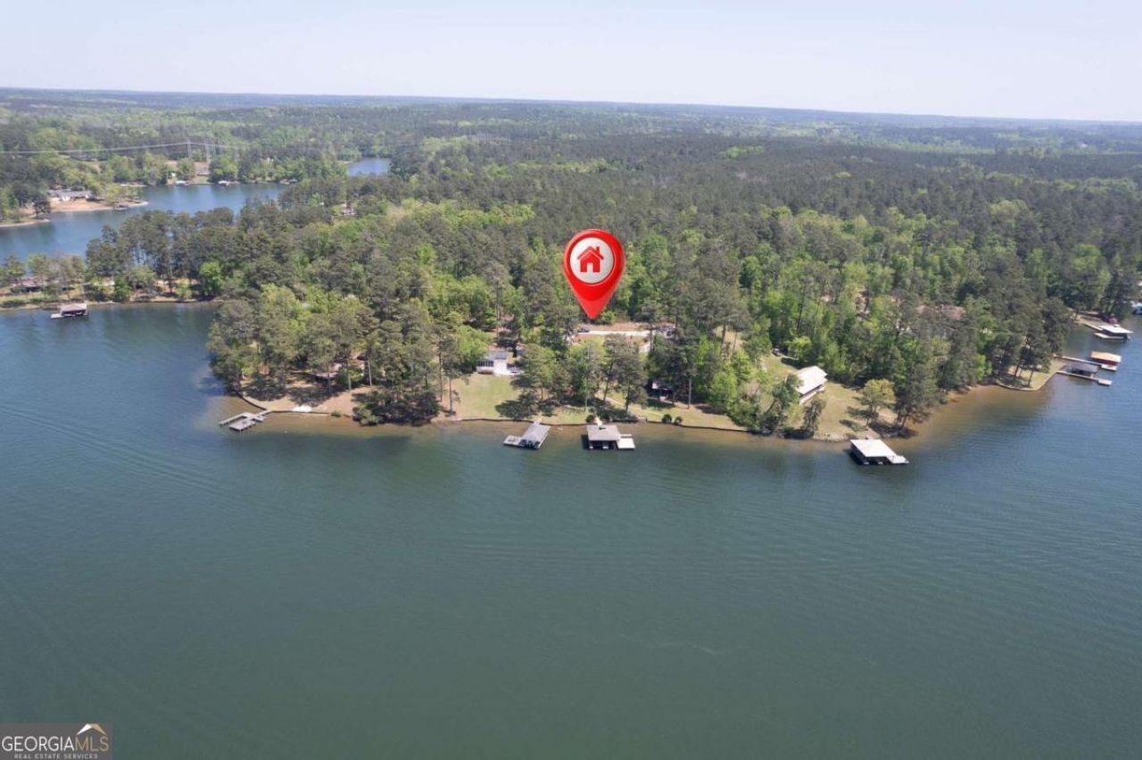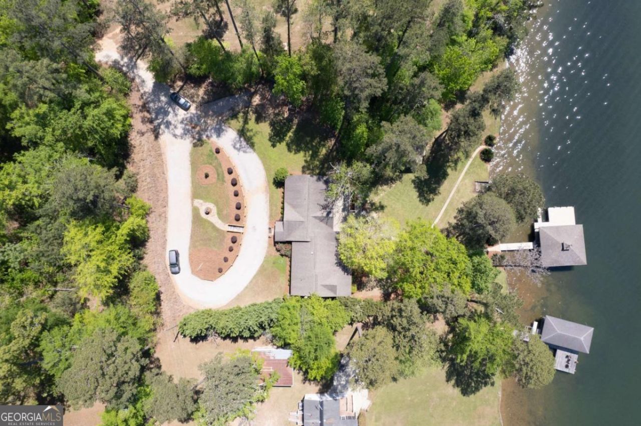 Exceptional one-level lakefront retreat on a private 1.37-acre lot on Lake Sinclair, renovated and expanded in 2014. This spacious home offers 5 bedrooms plus a versatile bonus room and 4 full baths, including two ensuites, ideal for hosting family and guests. Inside, enjoy soaring 10-foot ceilings, a stunning stone fireplace, and floor-to-ceiling windows for sweeping lake views. Pine vaulted and beam ceilings add warmth and character, while the open-concept design flows seamlessly into a well-appointed kitchen with a large island and walk-in pantry. Outdoor living is effortless with a screened porch, open deck, and 216 feet of shoreline. The max dock features two boat slips with lifts and dedicated jet ski space in deep, clear water. The showpiece is the custom built lakeside pavilion-crafted from reclaimed historic beams-designed for unforgettable entertaining with a fireplace, grill, smoker, sink, refrigeration, and a generous seating area. Additional highlights include a brand new deep water well, a tankless hot water system, as well as a fully encapsulated and waterproofed crawl space.