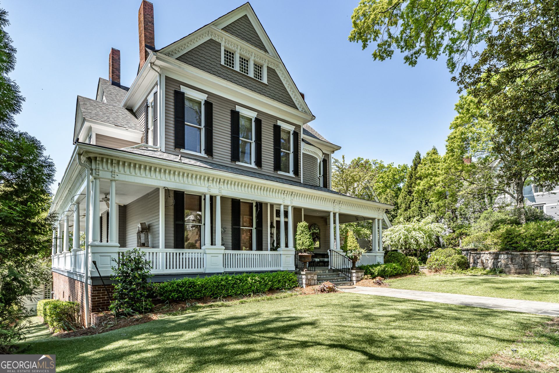 Step into a true piece of history in the heart of Downtown Rome's, historic district! This stunning Victorian style home was built in 1890 and is filled with character, charm, and one-of-a-kind details you won't find anywhere else. Inside, you'll find that the main living area is a true centerpiece, featuring rich woodwork, a coffered ceiling, custom built-ins, and a fireplace that creates a warm and inviting space. Throughout the home, you'll find other grand entryways, original hardwood floors, intricate millwork, high ceilings, and beautifully crafted details at every turn. The kitchen blends historic charm with modern updates, offering custom cabinetry, stone countertops, a large island, and stainless-steel appliances, all opening into a bright breakfast area filled with natural light. The formal dining room is a showstopper with detailed wall murals and a classic design, perfect for hosting large gatherings. Take the stairs or take the private elevator to all 3 floors to find multiple spacious bedrooms, additional fireplaces, tile bathrooms, a large custom laundry room and a bonus room that offers the perfect spot for a media room or playroom. The primary suite features a beautifully updated bathroom with a freestanding tub, large tiled shower, dual vanities, and elegant finishes that creates a true spa-like feel. The property also includes a 3-car attached garage with an additional apartment/in-law suite above, offering great flexibility for guests or family. Outside is just as impressive, enjoy a private courtyard with stonework, brick archways, and covered seating areas that is easily accessible from the finished basement. The property also features beautifully manicured gardens, gated pathways, a grilling space, and a low-maintenance green area. Relax on the wraparound porch just steps from downtown dining, shopping, and the riverwalk. This is a rare opportunity to own a truly iconic home Between the Rivers, don't miss out!