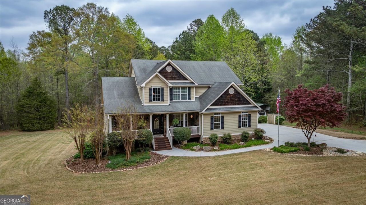 Welcome to this meticulously maintained Craftsman-style home, offering the perfect blend of warmth, charm, and modern comfort. This home sits on a beautiful 2.69 acres and offers complete privacy and the best outdoor living! Featuring 4 spacious bedrooms with the owner's suite on the main, and 3.5 baths, this beautifully designed residence showcases rich hardwood floors, soaring high ceilings, and a stunning stone fireplace that creates a cozy and inviting atmosphere. The kitchen offers plenty of cabinet spaces, custom pantry shelving, beautiful granite countertops, and a very warm and inviting atmosphere. Filled with abundant natural light, the home offers generous living spaces ideal for both everyday living and entertaining. The finished basement provides additional flexible space, perfect for gatherings, recreation, or a private retreat. Step outside and experience true outdoor living at its finest. Situated on a private 2.69-acre lot, this property offers complete tranquility and room to enjoy nature. Relax on the oversized screened porch, unwind on the patio just off the primary suite with direct deck access, or entertain guests on the expansive custom pool deck. A lower-level patio adds even more space for hosting and enjoying the outdoors. The charming front porch with stone accents enhances the home's curb appeal, while additional features include a garden area, playground, storage shed, and covered RV/camper parking!! With endless indoor and outdoor entertaining possibilities and peaceful surroundings, this exceptional home is truly move-in ready and waiting for its next owners to enjoy.