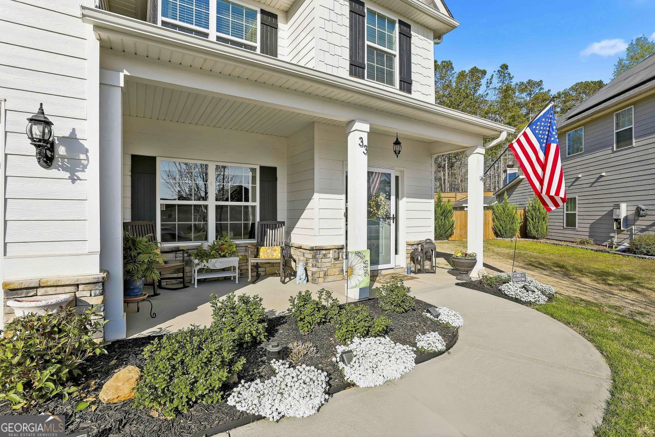 Thoughtfully designed. Ideally positioned. Move-in ready. Built in 2019 and set on a quiet cul-de-sac, this Ashton Place home offers a clean, modern layout with elevated finishes and seamless indoor-outdoor living. The main level is open and light-filled, centered around a spacious living area with fireplace and a kitchen featuring quartz countertops, stainless steel appliances, a center island, and a walk-in pantry. A flexible front room with coffered ceilings provides space for dining, work, or a secondary living area. The standout feature is the covered game-day porch with a wood-burning fireplace-an extension of the home designed for year-round use, overlooking a private backyard with established landscaping. Upstairs, the owner's suite is thoughtfully designed with custom walk-in closets and a spa-like bath with soaking tub, separate shower, and dual vanities. Three additional bedrooms, a full bath, and an updated laundry room complete the upper level. Additional highlights include spray foam insulation, a tankless water heater, fresh interior paint, and updated landscaping-creating a home that feels both efficient and turnkey. Located in Ashton Place with access to a community pool and playground, and just minutes from Newnan Piedmont Hospital, LINC trails, shopping, dining, and Peachtree City.