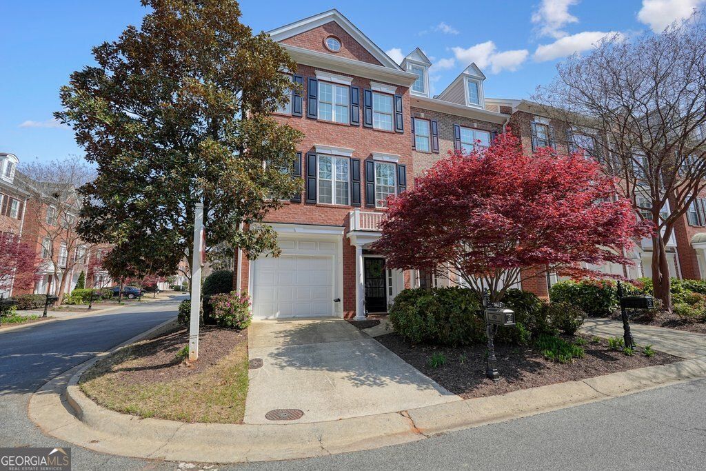Stunning, move in ready end unit townhome filled with natural light in the highly sought after gated community of Heritage at Roswell. Beautifully and thoughtfully designed, this 2 bed, 2.5 bath home with a spacious 2 car tandem garage offers the perfect blend of comfort, style, and location in the heart of North Fulton. Soaring ceilings, rich hardwood floors, and an open-concept layout create a bright, airy feel throughout the main living space. The great room and dining area/sitting area flow seamlessly together and are anchored by a cozy gas fireplace with custom builtin bookshelves that are perfect for both everyday living and entertaining. The eat-in kitchen features granite countertops, stained cabinetry, abundant prep space, pantry with deep shelving, electric range, and a large island with breakfast bar seating. The eat-in area with backdoor entry opens to a massive private wooden back deck with privacy wall, ideal for grilling, hosting, or simply enjoying peaceful Georgia mornings or even wining down after a long day. Upstairs on the 3rd level, the oversized primary suite offers vaulted ceilings, a spacious walk in closet, and a spa inspired bathroom complete with whirlpool tub, tiled walk in shower, dual vanity, and excellent storage. The secondary bedroom also features vaulted ceilings, deep closet space and its own private full bathroom with tub/shower combo. Also on top level includes a large laundry room with shelving (washer and dryer included) located off the bedrooms adds incredible everyday convenience. The lower level includes additional storage and access to the tandem 2 car garage with epoxy flooring and exterior access to a covered patio space beneath the deck for even more outdoor living spaces. Potential to finish part of the garage for additional living space! Enjoy resort style amenities including a lovely clubhouse, two pools, fitness center, multiple tennis courts, nature trails, and a peaceful community pond. Conveniently located just minutes from top rated Historic Roswell, Crabapple Market, Trader Joe's, local favorite restaurants, craft breweries, cozy coffee shops, and easy access to Highway 92, Highway 9, GA-400, and I-575. This isn't just a home, this is combined with an incredible and sought after lifestyle! Schedule your tour today and discover what it's like to call this incredible place home!