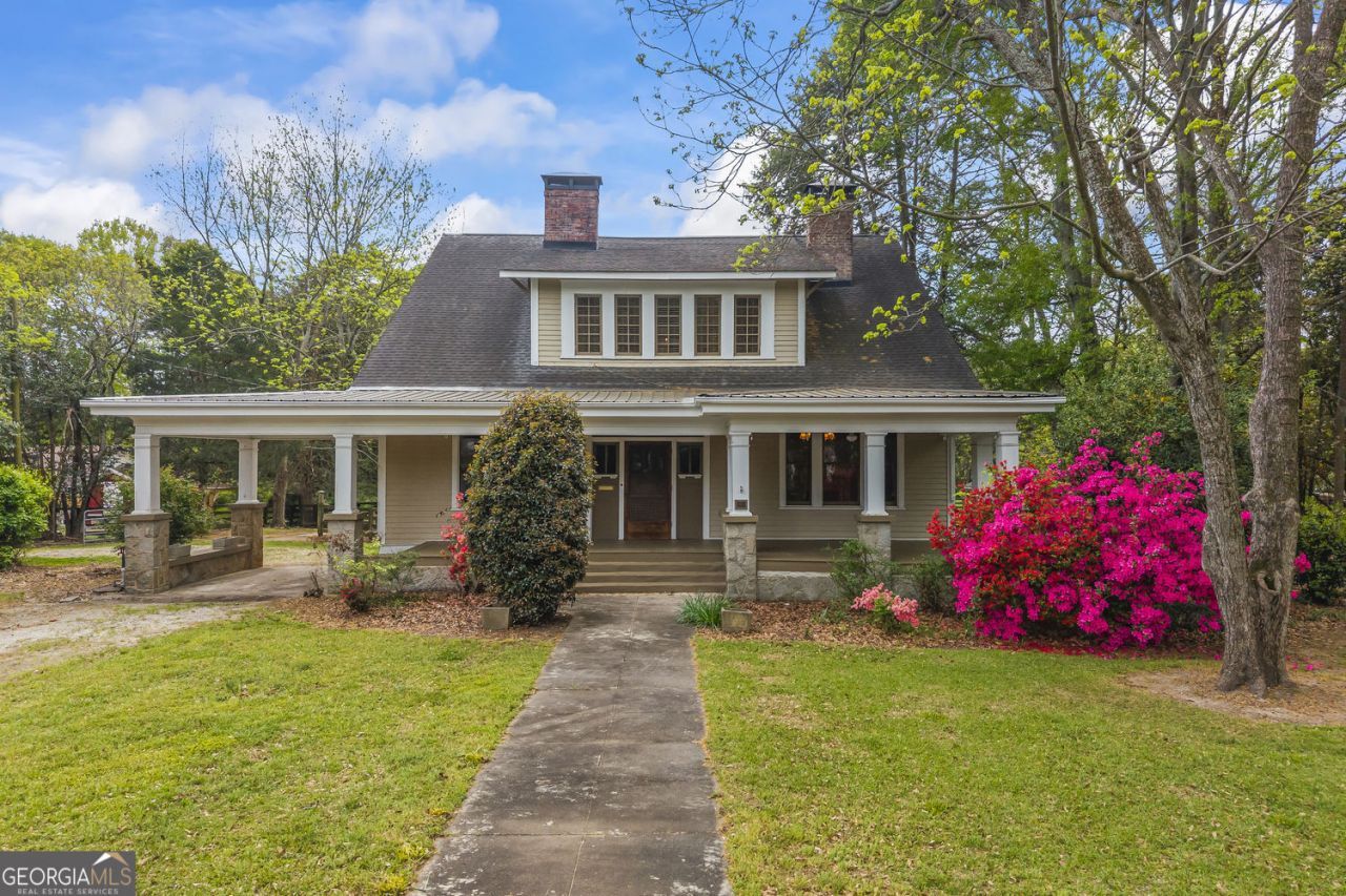 Step inside timeless character with this beautifully preserved Arts and Crafts-style home situated on 4.63 acres within the city limits of Lavonia. Rich in historic charm, the 3,415 sq ft home features many original details. Inside, you will find original heart pine floors throughout much of the home, adding warmth and authenticity. The dining room showcases classic wainscoting, original sconces, and pocket doors that open to the living room, ideal for both everyday living and entertaining. The living room features distinctive millwork, exposed ceiling beams, and a striking fireplace with unique brick detailing. This expansive property offers a picturesque setting with mature pecan trees in the rear, provide both beauty and privacy while still enjoying the convenience of in-town living.