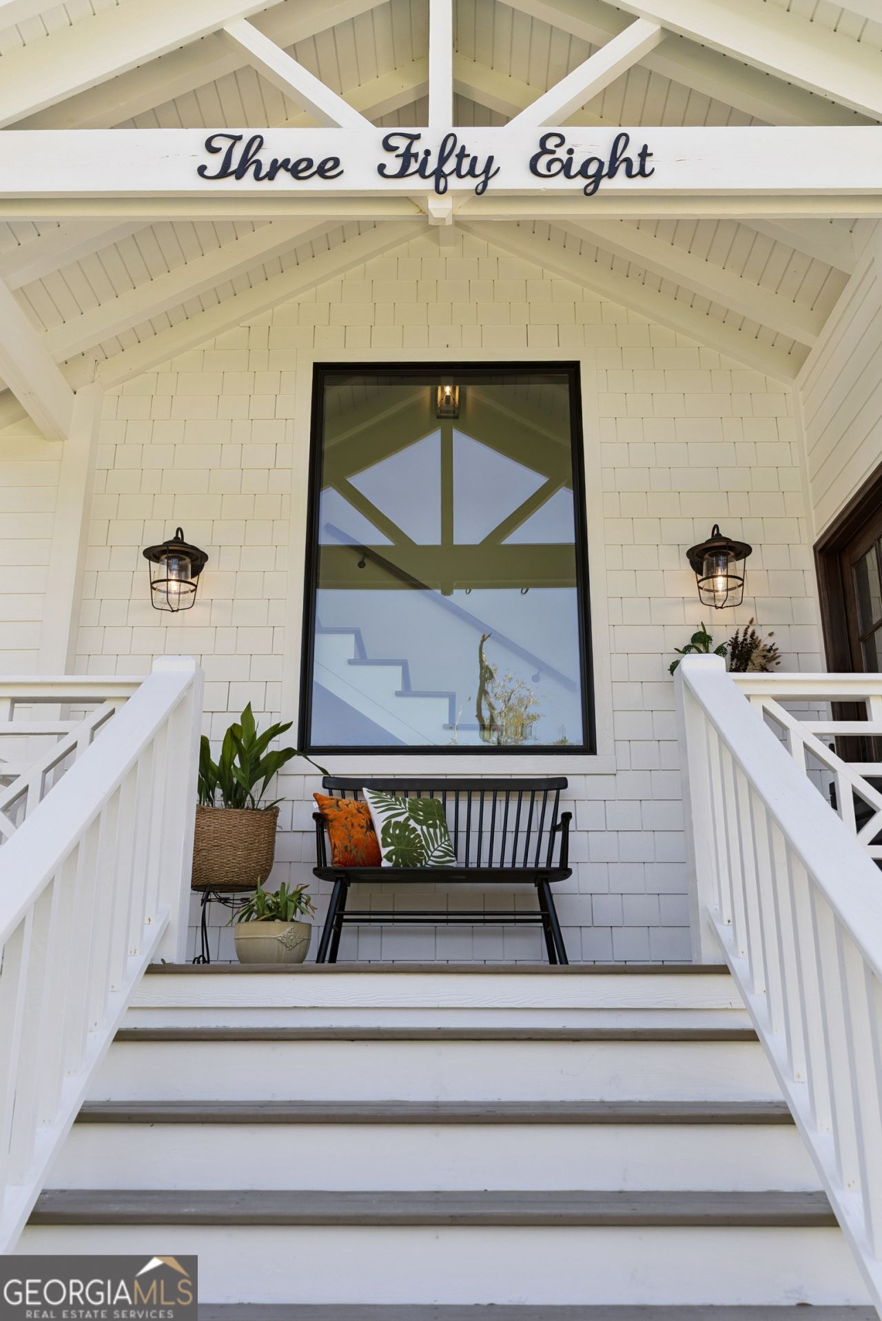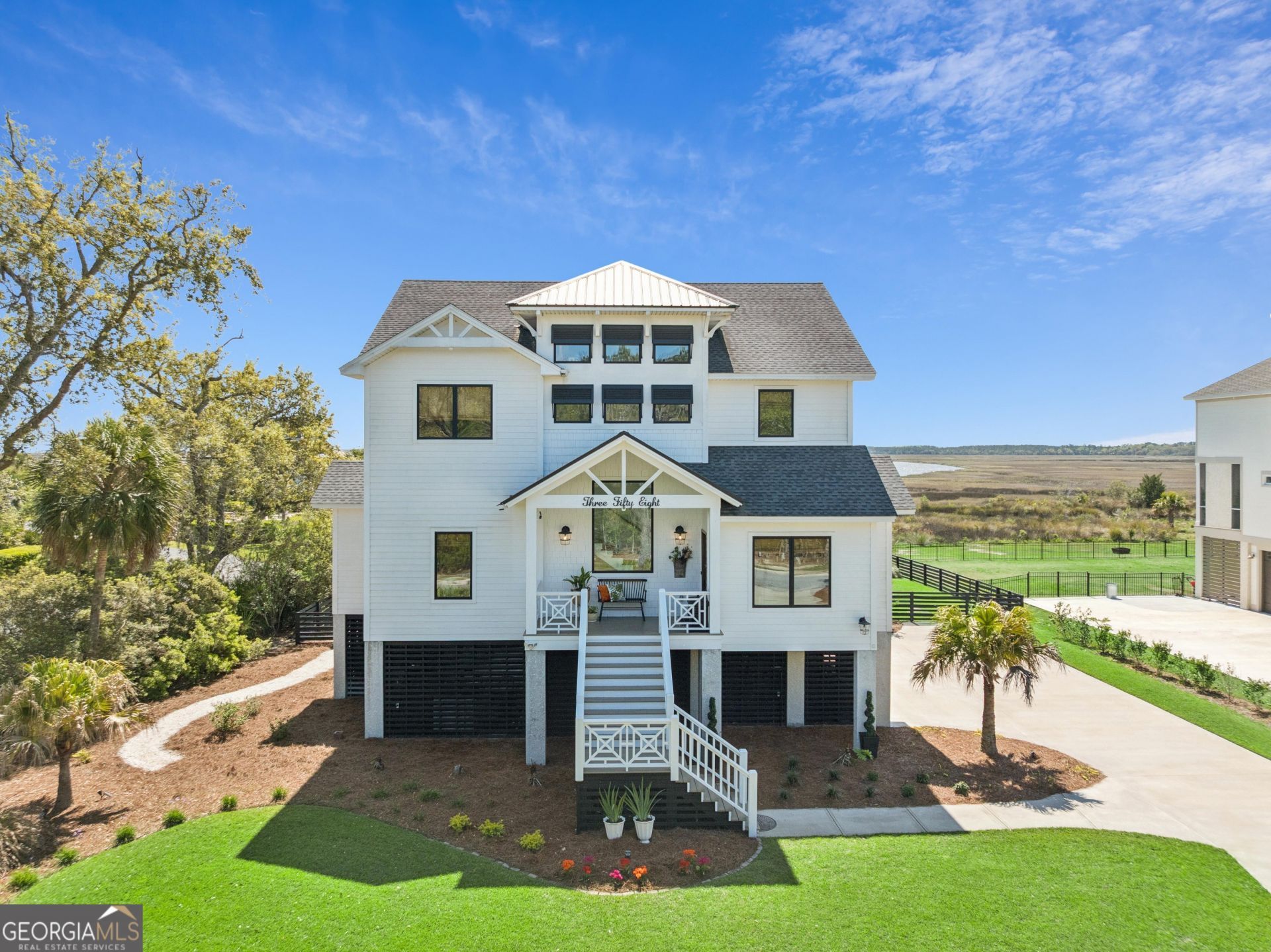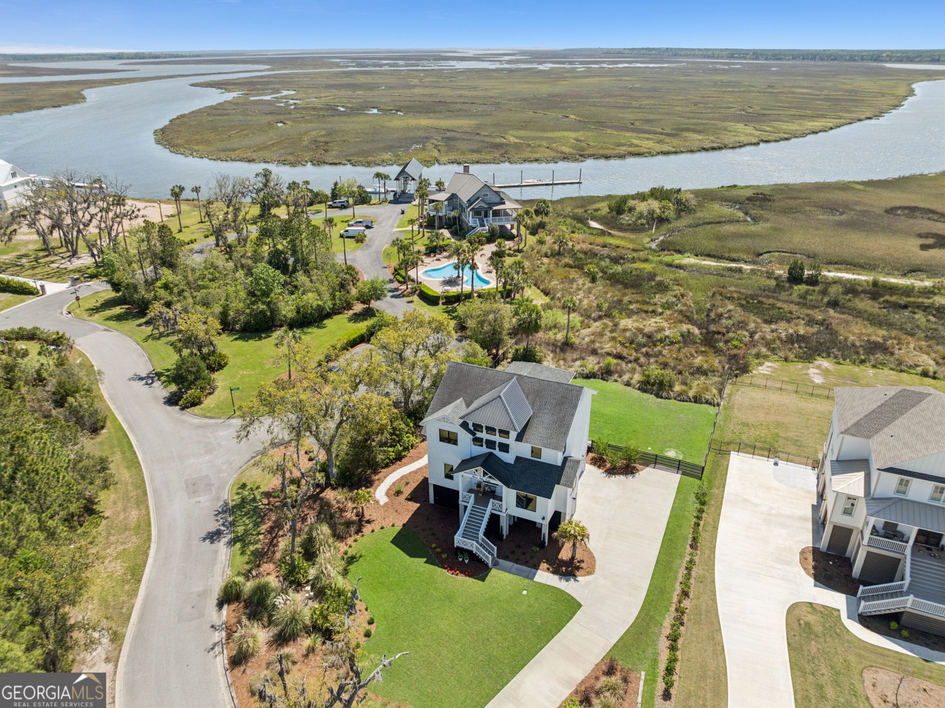 Located in the sought-after Maiden Creek Landing community off the Dover Bluff Road area, this custom-built marshfront home offers the perfect blend of luxury, privacy, and true coastal living. Ideally positioned near Hickory Bluff Marina, this property delivers a lifestyle that's as unique as it is serene. Completed in 2019 and offering over 3,000 square feet, the home features a thoughtfully designed reverse floor plan to capture sweeping easterly views of the marsh, the deep waters of Maiden Creek, and beyond to Jekyll Island. The top-floor living space is light-filled and inviting, with coastal-style beams and an open-concept layout designed to maximize the panoramic views. The spacious kitchen is both functional and beautiful, featuring stainless steel appliances, custom cabinetry, quartz countertops, a separate refrigerator and freezer, and an oversized island perfect for entertaining. Flowing seamlessly into the dining and living areas, the space is wrapped in windows-creating a peaceful retreat with front-row seats to breathtaking sunrises and ever-changing tidal landscapes. The lower level offers a well-designed split-bedroom layout, including a private primary suite with a custom walk-in closet/dressing area and a spa-like ensuite bath with double vanity and Roman shower. Two guest bedrooms, each with their own ensuite bath, are positioned for privacy, while a central sitting area with a mini-fridge and coffee bar provides a welcoming shared space. Expansive porches on both levels invite you to relax, dine, and take in the natural beauty that surrounds you. On the ground level, you'll find a two-car garage, dedicated golf cart parking, generous storage space, and a pre-installed elevator shaft for future convenience. Residents of this gated, deep-water community enjoy exceptional amenities, including a waterfront clubhouse with pool, fitness center, dock, and self-serve boat hoist. All of this, just minutes from St. Simons Island and Jekyll Island-offering easy access to beaches, golf, shopping, and dining. This is a rare opportunity to enjoy refined coastal living with unmatched access to nature, recreation, and the very best of the Golden Isles.