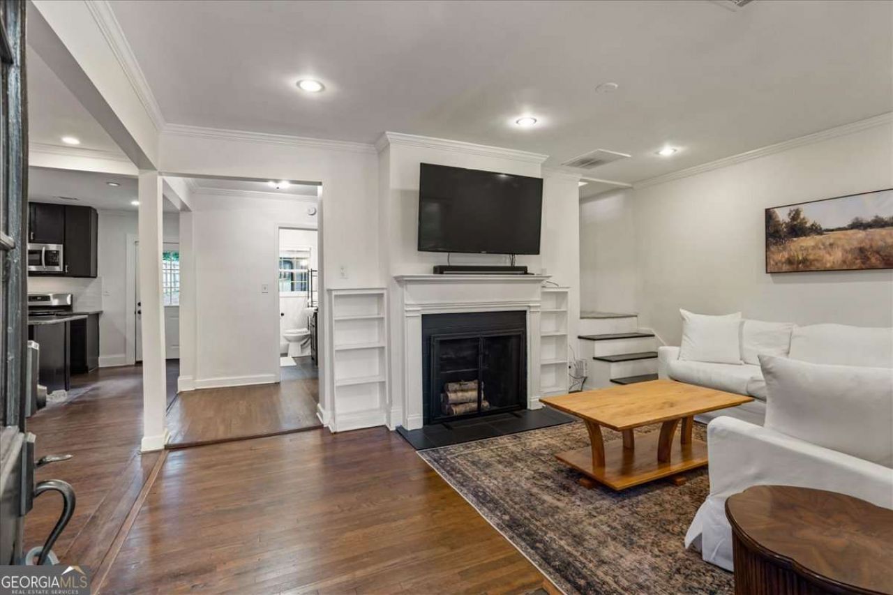 Prepare to be impressed! Welcome to this 3 bedroom and 3 full bath thoughtfully renovated home. It offers the perfect blend of modern living and comfort, nestled on a premium homesite with a great backyard complete with an expansive outdoor entertaining area, and privacy fenced. As you approach the home, step on to the large front porch. enhanced by the custom designed vaulted ceiling, with fans and upscale lighting. Take in the sights across the street of the Dekalb Memorial Park complete with a frisbee golf course. From the moment you step inside you will be greeted by an inviting open concept beginning with the family/living room with cozy fireplace flanked by built-in bookcases. To the left is a gracious dining room that opens to the chef's gleaming kitchen offering stainless appliances, an abundance of cabinetry, stone countertops, tile backsplash and island. The rear door provides easy access from the kitchen to the large rear deck, grilling area, and private backyard beyond. The rest of the interior provides a main level separate laundry room with built-in cabinets. A gracious primary offers a lovely retreat with a luxurious ensuite bath featuring a soaking tub, separate shower, dual vanities and a large walk-in closet. Two additional generously sized bedrooms, each with ample closet space, and two additional full baths. Beautiful, original hardwood flooring flows throughout most of the entire mail level. Don't miss the upper level bonus/multi-use room accessible via a staircase to the right of the fireplace. Upgrades include a tankless water heater, newer roof and HVAC, and a newer double width driveway, cement fiber siding, Double pane windows, and more. Conveniently nearby you'll find neighborhood shopping, dining and extremely easy access on to I-20. Truly a must see to appreciate the beauty and functionality of this exceptional property!