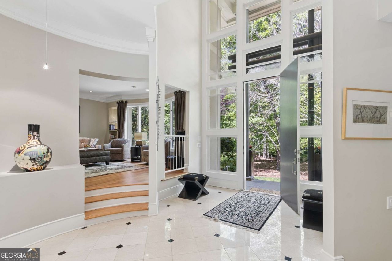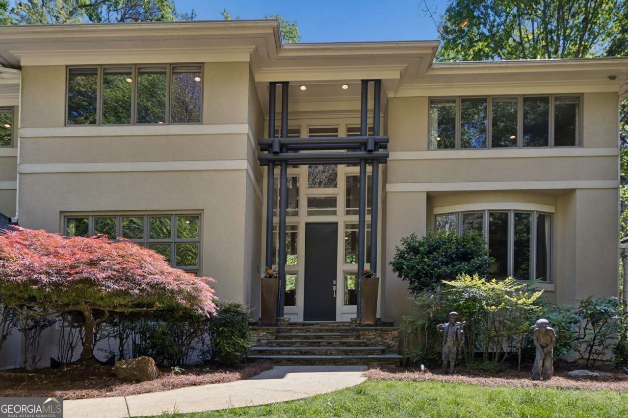 The Bentwater Estate is tucked away like a private retreat in the forest along the Chattahoochee River, this one-of-a-kind, architect-designed home offers a rare blend of natural serenity and refined living. Located in the exclusive Bentwater enclave at the back of Grogans Bluff-home to just 16 estate properties-this contemporary hard coat stucco residence sits on 1.5 acres, creating a peaceful, secluded setting that feels worlds away from the city. Surrounded by mature trees and the soothing presence of nature, the home is designed for both effortless entertaining and quiet relaxation. The open floor plan flows beautifully while still offering distinct, purposeful spaces. A dramatic two-story foyer welcomes you in, leading to the central living room, which is framed by an elegant dining room that seats 12+, a game room with a pool table, and a warm, inviting den. The kitchen is a true showpiece, outfitted with Sub-Zero and Wolf appliances, including double ovens and a warming drawer. Sleek granite countertops, a designer tile backsplash, a walk-in pantry, and abundant cabinetry combine style and functionality. A butler's pantry connects to the oversized dining room with its striking curved, vaulted ceiling, while an eat-in area and a large private office sit just off the opposite side. Upstairs, you'll find four bedrooms and three full baths. The oversized primary suite is a tranquil sanctuary with serene wooded views, a recently renovated spa-like bathroom featuring heated floors, and an expansive custom walk-in closet. The laundry room conveniently connects to the suite and hallway. A guest bedroom with en suite bath sits at the front of the home, while two additional bedrooms share a Jack-and-Jill bath. The thoughtful layout creates a spacious landing overlooking the foyer and living room below. The finished basement expands the living space with a fifth bedroom, full bath, and a large entertainment area, along with generous unfinished space currently used as a workshop. This area offers excellent potential for a sixth bedroom, additional bath, or customized living space. Outdoors, two sets of French doors open to an expansive deck overlooking a flat, wooded backyard-perfect for enjoying the peaceful, forest-like surroundings. A long, private driveway leads to the home, and a three-car garage is conveniently located off the kitchen. Recent updates include a water heater (2020), main floor HVAC (August 2021), and a new roof (2025). While the setting feels like a secluded riverside escape, you're still just minutes from Atlanta's best dining, shopping, and entertainment, with easy access to the interstate for quick trips to Buckhead, Midtown, Downtown, or the airport. Optional membership to Grogans Bluff Swim/Tennis or Social Club adds even more lifestyle appeal.
