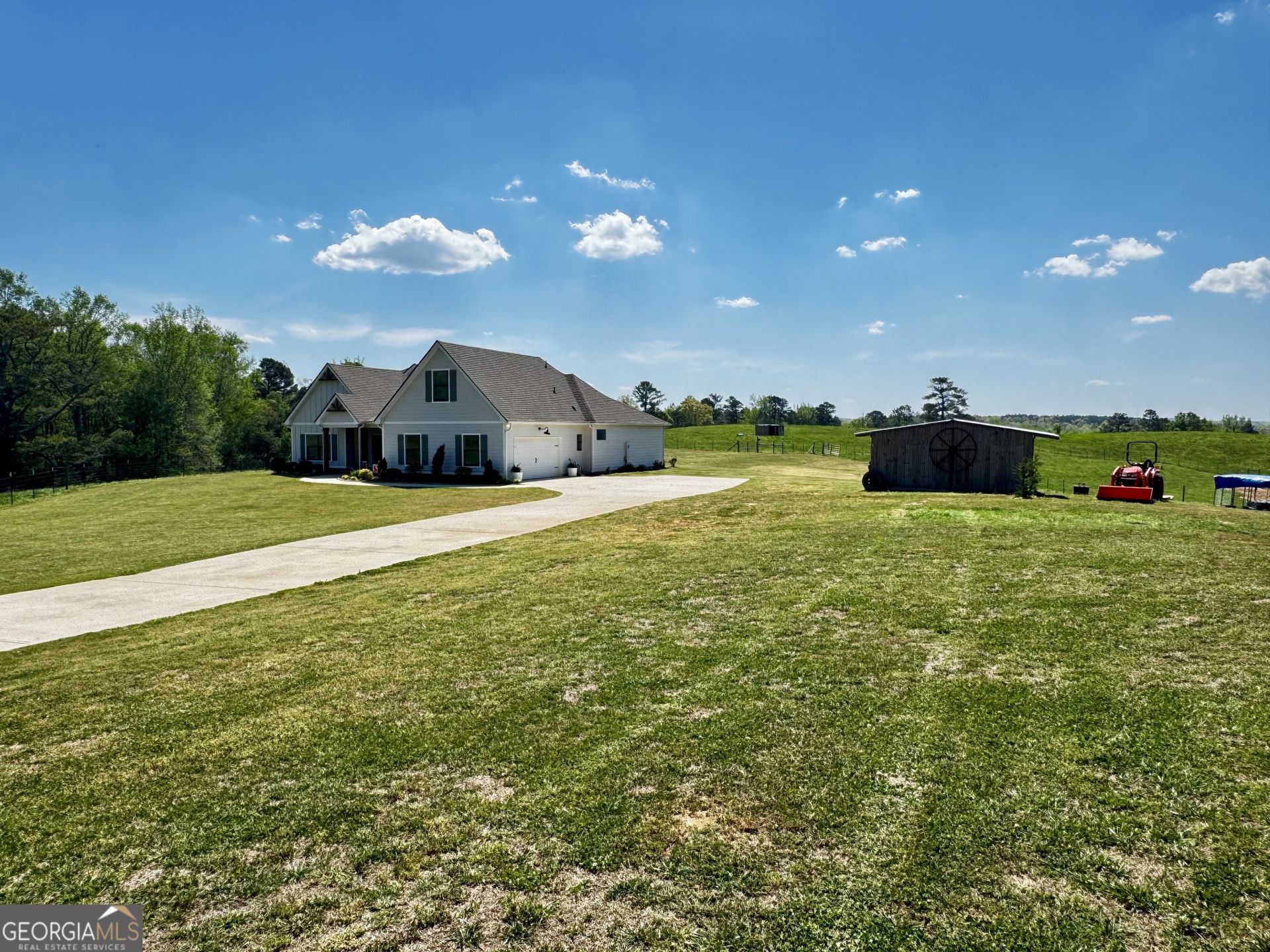 Welcome to your private slice of country paradise! Where comfort, versatility, and breathtaking scenery come together on 6 stunning open acres. Step inside to an inviting open floor plan that creates a seamless flow, perfect for gathering with family or hosting guests. The kitchen is both stylish and functional, featuring sleek quartz countertops that continue throughout all bathrooms, adding a cohesive and upscale touch. The main level is designed for convenience, with a spacious primary suite and two additional bedrooms. The primary bathroom serves as a true retreat, showcasing a tiled shower, separate freestanding soaking tub, and thoughtful finishes throughout. Upstairs, you'll find a versatile loft complete with its own full bathroom and walk-in closet. In addition the bonus room offers endless possibilities whether you envision an office, playroom, or hobby area. Durability meets style with RevWood flooring throughout the main living areas, while tile flooring in all bathrooms and the laundry room ensures easy maintenance. The laundry room also features a large storage closet, providing plenty of space to stay organized. Cozy up by the wood-burning fireplace on cooler evenings, made even better with a generous supply of split and seasoned firewood that will remain with the home. Step outside and prepare to be wowed. Enjoy peaceful mornings and unforgettable sunsets from not one, but three covered outdoor spaces! Two back patios and a welcoming front patio. The real showstopper is the breathtaking view from the back of the home, where you can overlook miles of treetops and rolling landscape. It's a rare and stunning backdrop that offers a sense of privacy and tranquility that's hard to find. The land is fully equipped for livestock, featuring three cross-fenced paddocks and ample open space, making it truly move-in ready for those seeking a rural lifestyle. This property truly has it all-space, style, functionality, and unforgettable views. Whether you're looking for a peaceful retreat, a working mini-farm, or simply a place to call home with room to grow, this one checks every box.
