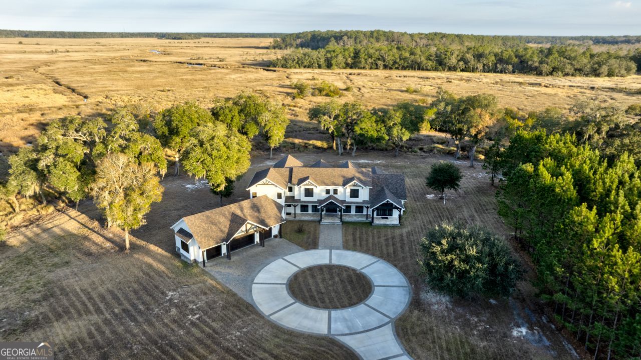 Marsh Oaks is a one-of-a kind 344 acre secluded marsh-front estate located in Liberty County, Georgia. This extraordinary coastal property offers an unmatched combination of privacy, sweeping natural views, and refined living. Marsh Oaks is the classic low country landscape featuring saltwater tidal creeks, pine plantation and majestic live oaks. In addition to those attributes, this property's acreage offers a myriad of opportunities for outdoor recreational activities. The main residence, located down a long private driveway, is perfectly positioned in a beautiful oak hammock along the marsh. This custom built home is approximately 5,300 heated square feet with four bedrooms and five-and-a half baths. Designed for effortless, everyday living and elevated entertaining, this thoughtfully curated home features an open-concept floor plan with the Great Room, Chef's Kitchen and formal Dining Room all contributing to intimate relaxed gatherings or larger more formal entertaining. The Great Room has a vaulted wood ceiling, stone wall surrounding a gas fireplace and double sets of glass doors with transoms framing breathtaking views of sunrises and moonlit evenings over the marsh. The Chef's Kitchen, appointed with premium professional appliances, custom cabinets, as well as custom rustic Alder wood island and hood, joins the Great Room opening out to a large covered vaulted porch with a gas fireplace, future outdoor kitchen and expansive views of the marsh. Just a few steps away from the main Kitchen is a secondary Kitchen/Laundry with an island, built-in ice maker, granite countertops and slate floors. Located between the two Kitchens is a spacious walk-in Pantry and full bath. Additional rooms on the Main Level include a Foyer, Study, Powder Room, and the Primary Suite featuring a vaulted wood ceiling, his and hers walk-in closets, and a luxurious bath with soaking tub, his and hers vanities and walk-in shower as well as a covered vaulted porch off of the bedroom. Two separate staircases lead to the second floor (one from the back Hall and one from the Great Room) and join a long hallway with display cases and storage. The second floor hosts a vaulted Bonus room with wet bar, a Laundry Room, and three additional bedrooms, each with an ensuite bath and walk-in closet. Inspired by the surrounding landscape, front and back covered porches offer limitless views of untouched natural beauty and the wildlife therein. There is an expansive 1,165 square foot four-car garage with custom doors, attic storage with automated lift system, and is plumbed for future entertainment use. Located at the entrance to the property is a traditional block-built home which historically served as a hunting cabin and adds additional living space to the property. Marsh Oaks represents a rare opportunity to own a private coastal sanctuary where nature and refined living exist in perfect harmony. This property is ideal for a permanent residence or as a serene retreat for those longing to get away. If you would like to schedule a showing to view this exclusive listing, please contact listing agent, Chap Shuman, directly. Showings are by appointment only.