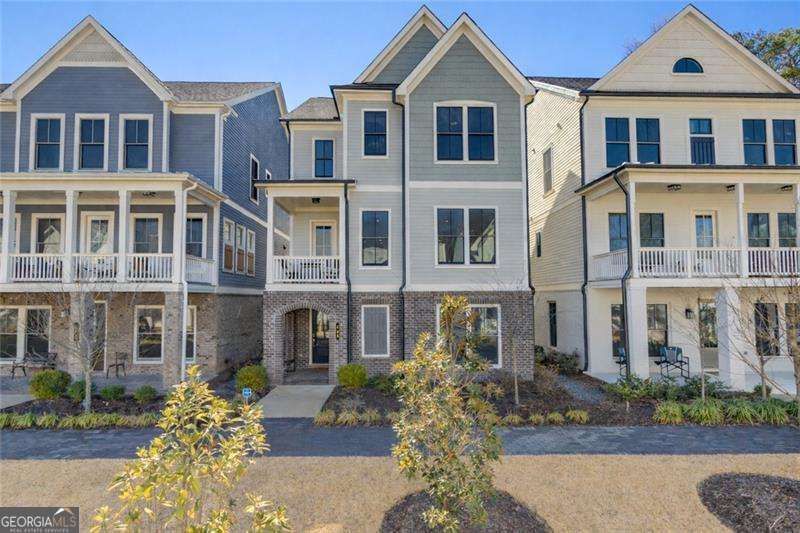 Experience the perfect blend of luxury and convenience with this single family home that lives like a townhome, offering low-maintenance living with lock-and-leave lifestyle! Perfectly situated in the heart of Downtown Alpharetta, near Town Green, Avalon, and Alpha Loop, this home offers a walkable lifestyle to it all! Ideal for those seeking top-rated dining experiences, shopping, an array of concerts and events, farmers markets and nearby parks. This nearly new single family home is beautifully designed across three floors. At the heart of the home, you will find a gourmet kitchen with high-end professional Wolf appliances, Sub-Zero refrigerator, a smart range hood, stunning quartz countertops with a sprawling island, ceiling-height cabinetry, pot filler, white fireclay farmhouse sink, and a dream walk-in pantry. The kitchen opens seamlessly to the dining area and family room, highlighted by a gorgeous stone fireplace with flanking cabinets, soaring 10-foot ceilings, and an abundance of natural light. Completing this level are two outdoor covered balconies perfect for relaxing or entertaining, along with a convenient powder room. Upstairs, the owners suite features an ensuite bath with double vanities, oversized seamless glass shower with dual shower heads, coupled with custom walk-in closet. This level offers an additional two large bedrooms with walk-in closets, full bath, and a dedicated laundry room. The terrace level offers a full bath and finished flex space making it an ideal setting for movie nights, an exercise room, home office, or a potential 4th bedroom. Every detail of this courtyard home has been curated for elevated living with high-end finishes and thoughtful upgrades including hardwood flooring on all three floors, lighting, built-in cabinetry, drop zone, ample storage solutions and an oversized two-car garage. Located in the highly sought after Manning on the Square with Top North Fulton schools.
