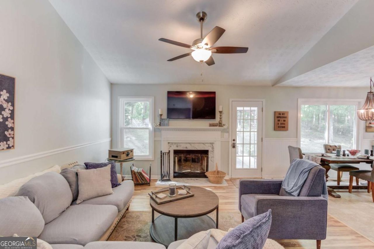 Space, privacy, and flexibility - this home delivers it all on over half an acre. This well-maintained home offers a flexible layout designed for both everyday living and hosting guests. The main level features a vaulted fireside family room and a desirable split-bedroom layout. Two secondary bedrooms share a full bath, while the private owner's suite is tucked on the opposite side with a vaulted ceiling, en suite bath with soaking tub, and walk-in closet. The spacious kitchen is filled with natural light and features stainless steel appliances including a new range and microwave. The finished basement adds additional living space with a bedroom and a bonus room, ideal for a media room, home office or additional family living space. The front yard landscaping is designed to come alive with seasonal color, creating beautiful curb appeal as everything begins to bloom. The expansive backyard extends beyond the fenced area, offering even more room to enjoy. Additional highlights include a garage with workshop and/or storage space, new HVAC (2023) and fiber internet run throughout the home. All of this with no HOA!!