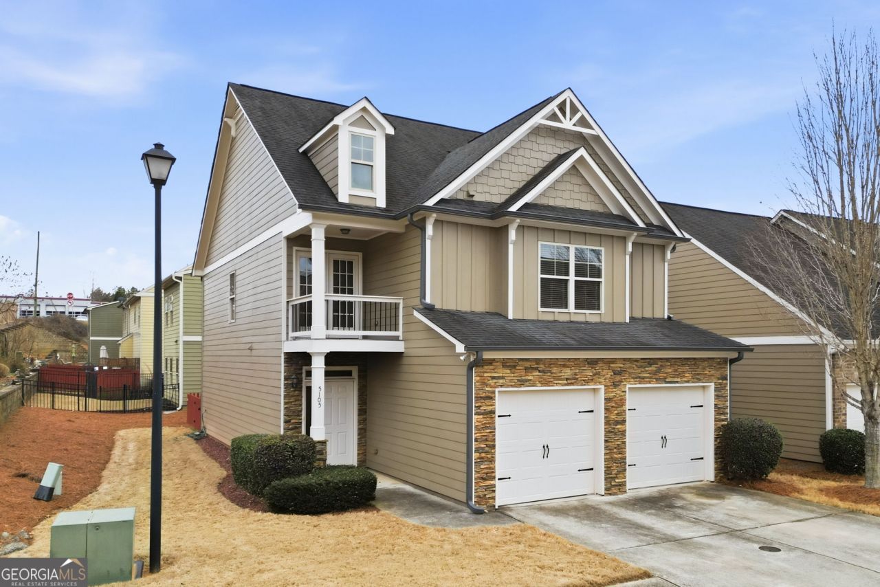 Welcome to this immaculate Craftsman-style home in the sought-after gated community of Lake Acworth Village! This 3-bedroom, 2.5-bathroom gem features an open-concept main floor highlighted by a spacious kitchen with a central island that flows seamlessly into the fireside family room. Upstairs, you'll find a versatile loft space perfect for a home office or media room, along with a convenient upper-level laundry. The oversized primary suite offers a spa-like bath with a double vanity and a separate soaking tub/shower. Enjoy the private, fenced backyard, perfect for entertaining! Walk to downtown Acworth's shopping and dining, or take a short bike ride to Acworth Beach and Lake Allatoona. Resort-style amenities include a pool, clubhouse, and playground.