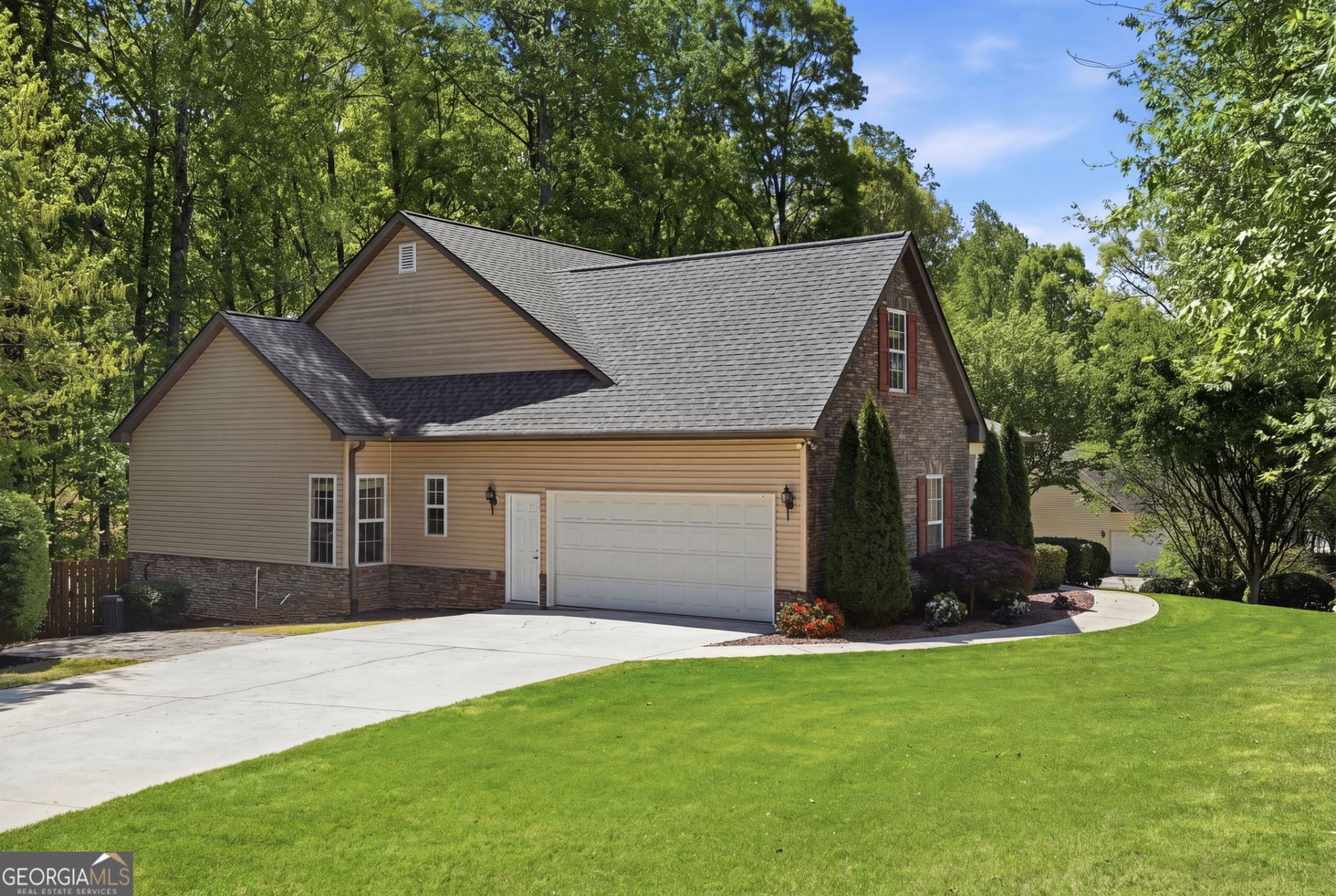 Beautifully maintained 4BR/3.5BA ranch offering true main-level living with a BRAND NEW ROOF! This home features a spacious primary suite with a private sitting area-perfect for a home office or quiet retreat. Enjoy the welcoming covered front porch and gorgeous landscaping. Step into a vaulted entry leading to a spacious great room with soaring 14-ft ceilings and a stunning stone fireplace. The kitchen offers granite countertops, tile backsplash, and a breakfast nook overlooking a private, wooded, fenced backyard with deck. The fully finished basement includes an additional bedroom and full bath ideal for guests, multigenerational living, or entertaining. Situated on a private corner lot of over 1/2 acre, this home offers both space and convenience with easy access to Dawsonville, Dahlonega, and Gainesville. Located in a desirable community with great schools. Turn-key and move-in ready. Welcome Home!