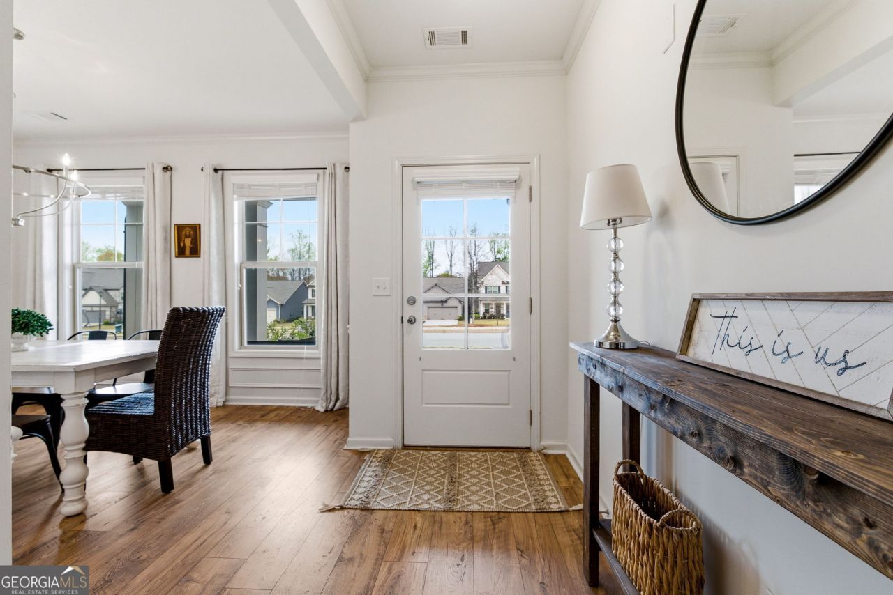 Welcome home to 5445 Trillium Way located in the Villages at East Main neighborhood. This beautifully maintained newer construction home in the heart of Flowery Branch, offers the perfect blend of low-maintenance living, walkability, plenty of storage, and modern design. This rare, larger floor plan features 2,657 square feet with an open-concept layout ideal for both everyday living and entertaining. The main level includes a spacious primary suite, a convenient powder room, and a bright living area that flows into the kitchen. The kitchen is a standout, featuring a large island, stone countertops, 42 white cabinets, stainless steel appliances, pendant lighting, and plenty of room for entertaining. Upstairs, you'll find three additional bedrooms, all with walk-in closets, a full bath, a loft living area, and a huge unfinished 170 sq ft room-perfect for storage or future customization. Enjoy outdoor living with a fenced-in backyard and large patio, ideal for relaxing or hosting. Additional features include beautiful LVP flooring, Mohawk hardwoods on the main level, carpet in bedrooms, trey ceiling in the primary suite, and tinted windows downstairs for added privacy and energy efficiency. The home also includes a 2-car garage. The HOA covers all lawn maintenance, making this a truly low-maintenance home. The community has two fire-pit area for neighborhood gatherings. Located within walking distance to downtown Flowery Branch, you'll have easy access to dining, shopping, breweries, and local charm. You're also less than a mile from Lake Lanier, under 5 minutes to the Falcons training camp facility, and just half a mile from I-985 for convenient commuting. Grocery stores and everyday conveniences are all close by. Don't miss out on this beautiful home in a highly desirable North Atlanta location where walkability, convenience, and value are getting harder to find.