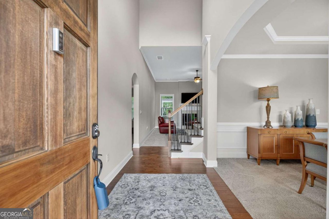 Beautifully cared-for move-in ready two-story Craftsman home located in a sought-after swim/tennis community Holly Springs, featuring a playground and clubhouse. A striking two-story foyer with an arched opening welcomes you inside and leads to the formal dining room, accented by an elegant octagon ceiling and classic judges paneling. Thoughtfully designed for both style and everyday comfort, the open floor plan is ideal for entertaining and daily living. The spacious kitchen is a standout, offering 42 cabinets, granite countertops, stainless steel appliances, a large island with bar seating, and a walk-in pantry. It opens effortlessly to the expansive family room with a cozy fireplace, along with a separate den featuring its own fireplace which is perfect for multiple gathering spaces. Step outside from the kitchen or den onto the generously sized, freshly painted deck overlooking a private backyard-great for hosting or unwinding. The main-level owner's suite provides a peaceful retreat with a spa-like bathroom complete with a tiled shower, soaking tub, and double vanities. Upstairs, you'll find a private guest suite with its own full bath, plus two additional bedrooms that share another full bath. A versatile media, or bonus room offers flexibility for a home office, playroom, or theater space. Additional highlights include a main-level laundry room, in-wall pest control system, and a spacious three-car garage with an extended driveway. The full, unfinished walkout basement is stubbed for a bathroom and additional rooms offers 1,871 square feet of potential for future customization. Beautiful landscaping and strong curb appeal round out this impressive property. Conveniently situated near I-20, shopping, dining, and just minutes from Hartsfield-Jackson Atlanta International Airport, this home combines modern comfort, functional design, and resort-style amenities in a prime Douglasville location.